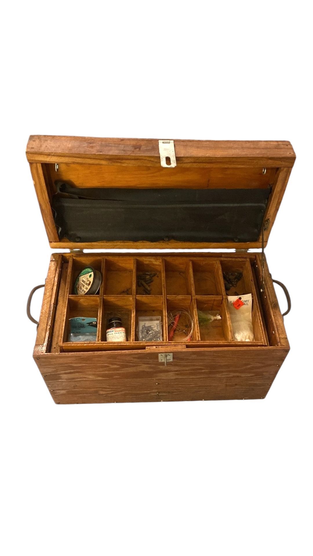 Mr. Robinson’s Vintage Handmade Wooden Fishing Box w/Gear