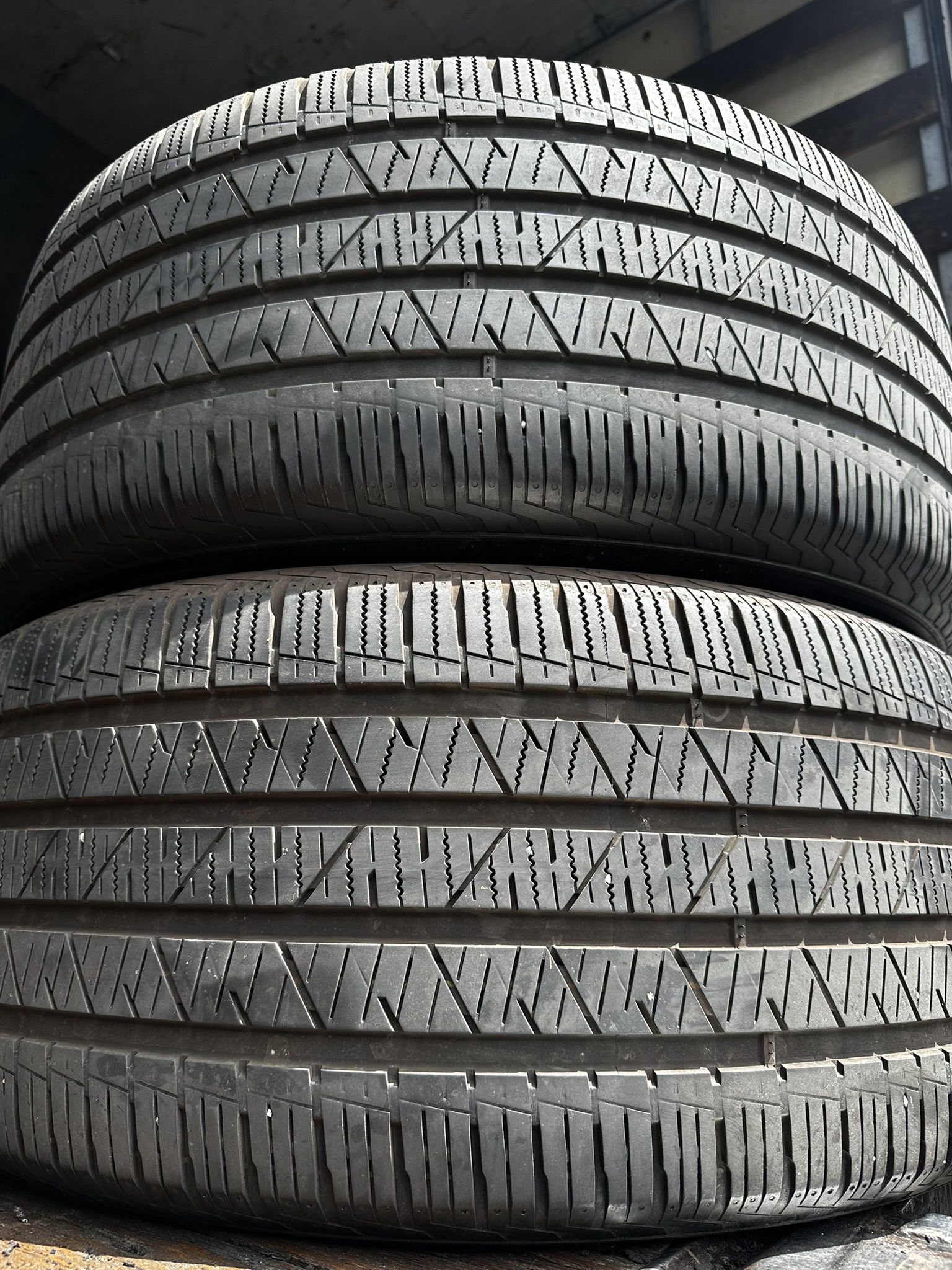 TWO 285 45 21 Hankook DYNAPRO H2 PLUS 2 with 70% tread $120 for both 285/45/21 Used Tires 285/45R21 We are a tire warehouse that only sells. We do not have the machines to offer installation. We have a recommended install shop $20 each mounted & balanced . 2 miles away We have over 5,000 used tires in stock. Some tires may have been professionally repaired or may need repair, but only in safe areas—never the sidewall. Repairs may include patches or stem patches. We guarantee that no tires have sidewall repairs. Please note: We do not keep track of individual tire repair history. . . . . . . . . . Crossover/SUV Touring All-Season light truck tires are for drivers who want a combination of sophisticated low-profile tires/large rim diameter wheels to enhance their vehicle's appearance with all-season versatility, including traction in light snow. Crossover/SUV Touring All-Season tires branded with the M+S symbol are sometimes used as Original Equipment (O.E.) on 2WD and 4WD light- and medium-duty crossover and sport utility vehicles. Audi Q8 Audi SQ8 BMW X7 Bentley Bentayga Porsche Cayenne Rolls-Royce Phantom Rolls-Royce Cullinan Kia EV9 Mercedes-AMG G63 Mercedes-EQ EQS SUV Mercedes-Benz GLS Mercedes-Benz GL