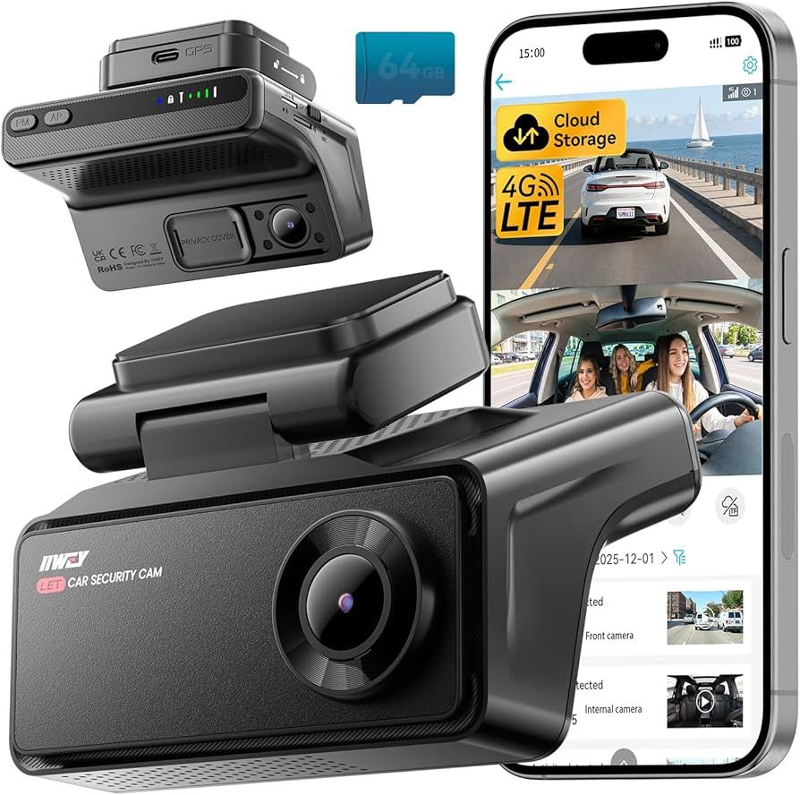 4G LTE Dash Cam w/ Live Streaming, 2K+1080P Front & Interior, GPS Parking Mode