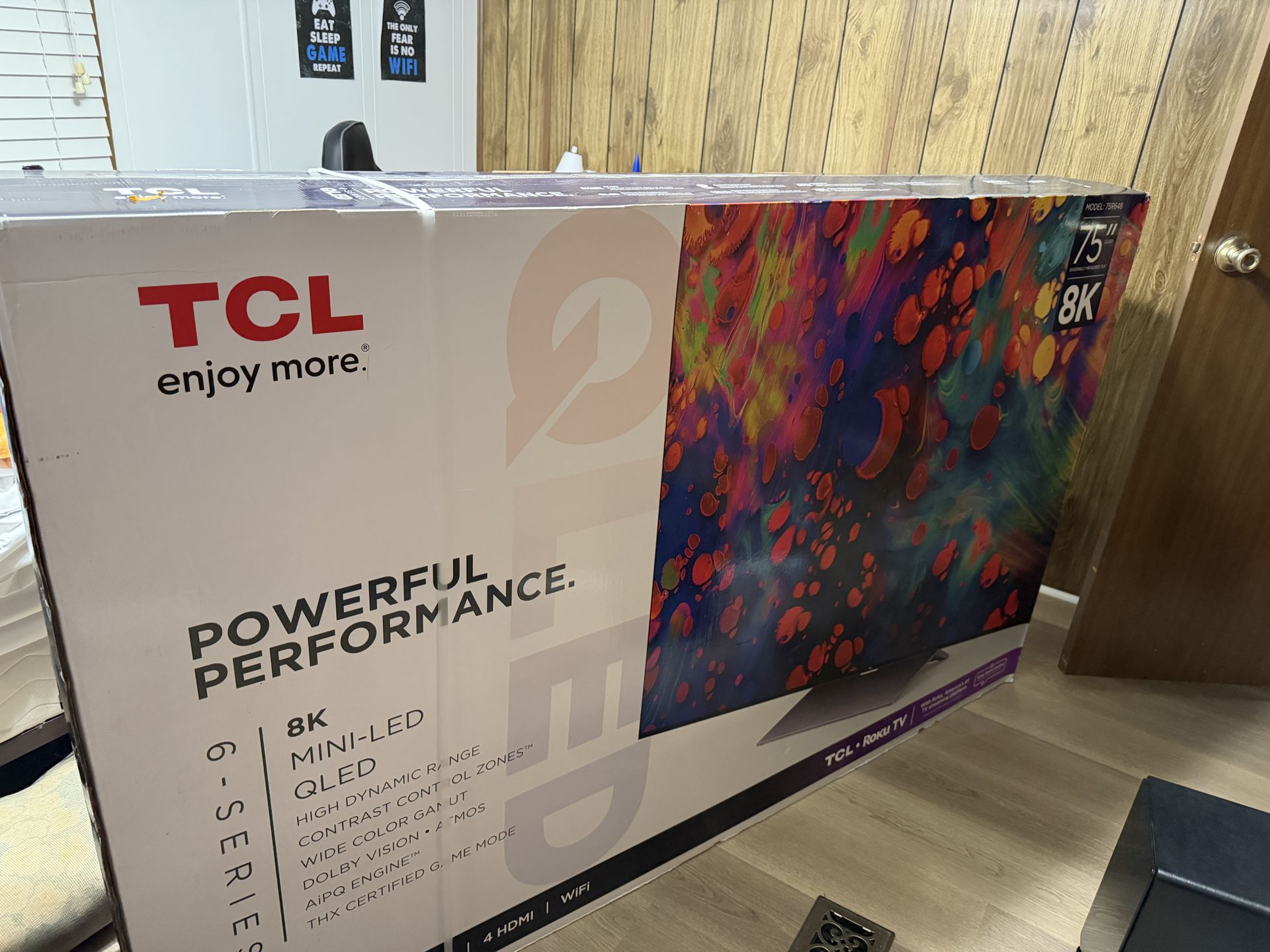 TCL 75" Class 6-Series 8K Mini-LED UHD QLED Dolby Vision HDR Smart Roku TV - 75R648 BRAND NEW BOX UNOPENED! I received this tv under my extended warranty, but I didn’t need it because my father bought me another one & mounted it. I paid $2,000 for my old one and I purchased it a year ago in September. I still have the emails from Allstate (Walmarts Insurance). It is an excellent deal! Take a look for yourself at https://offerup.co/faYXKzQFnY?$deeplink_path=/redirect/. They’re still selling it for $2000.