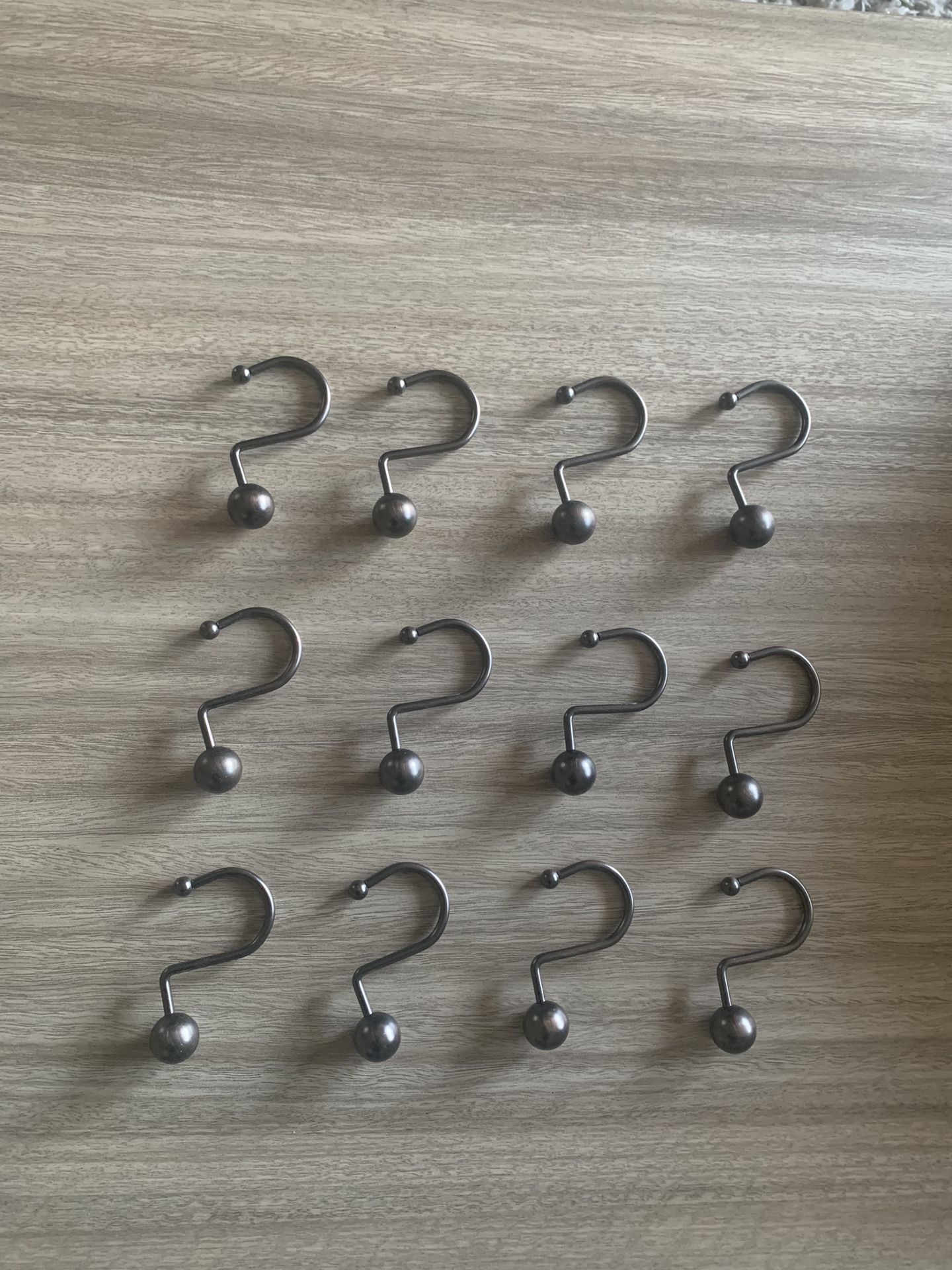 12 Hanger Set Shower Curtain Hooks Matte Ball Dark Brown Metal