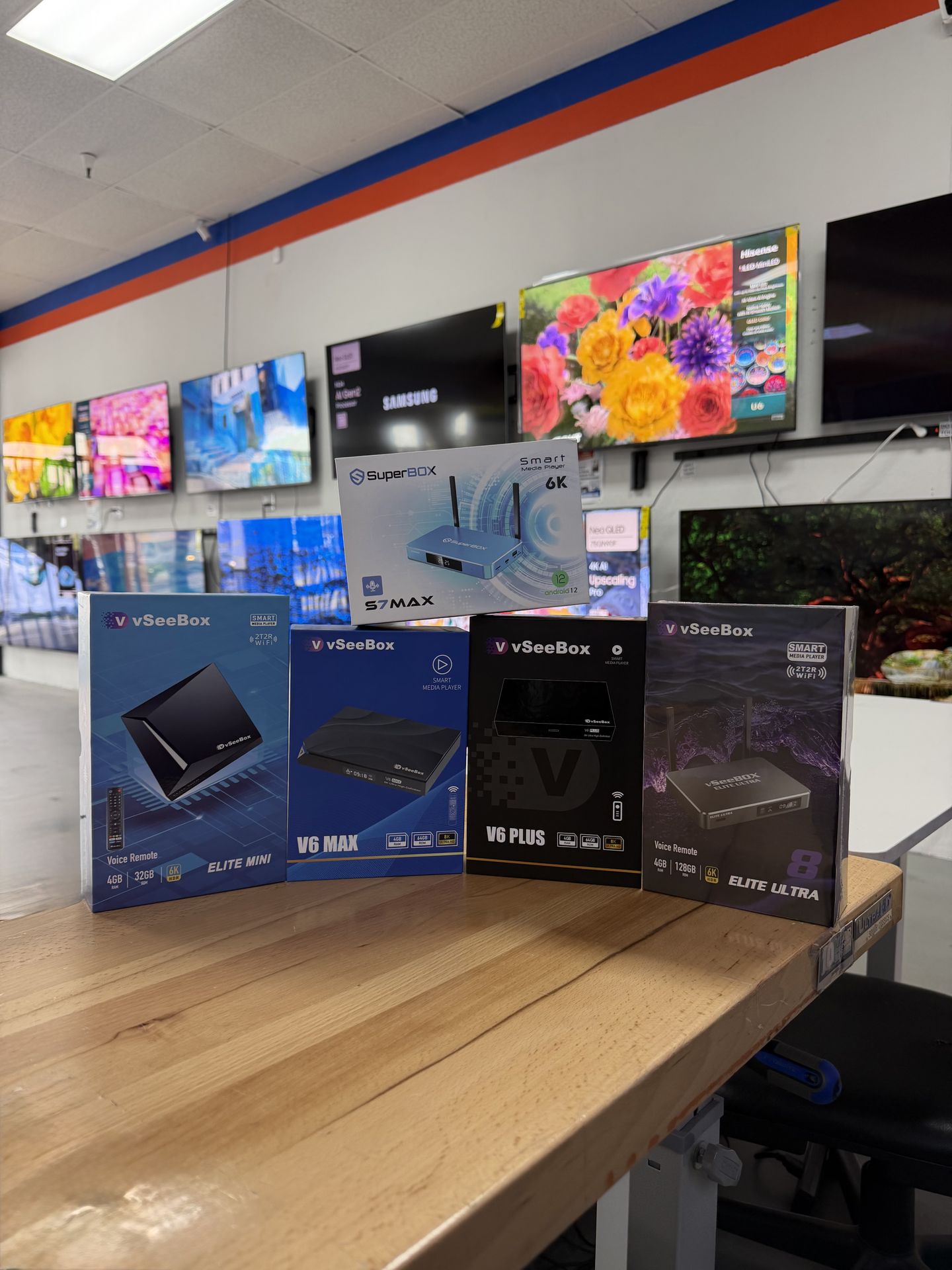 Trusted seller, boxes are backed by a 1 year manufacturers warranty. 24/7 in box support. Units are sold brand new, sealed. Bulk pricing and wholesale available. 🔥 ‼️vSeeBox V6 Max‼️ 1 Box $230 - 2-5 Boxes $220 each - 6-10 Boxes $210 each - 20 Boxes $190 each ‼️vSeeBox V6 Plus‼️1 Box $260 - 2-5 Boxes $250 each - 6-10 Boxes $240 each - 20 Boxes $230 each 🔥vSeeBox Elite Mini $280🔥 2-4 Boxes $270 🔥vSeeBox Elite Ultra $330🔥 2-4 Boxes $310 each ‼️SuperBox S7 Max‼️ 1 Box $180 - 2-9 Boxes $175 Each - 10-19 Boxes $170 Each - 20+ Boxes $165 Each ‼️SuperBox S7 Ultra‼️ 1 Box $200 - 2-4 Boxes $195 Each - 5-9 Boxes $190 Each 10-19 Boxes $185 Each - 20+ boxes $180 each