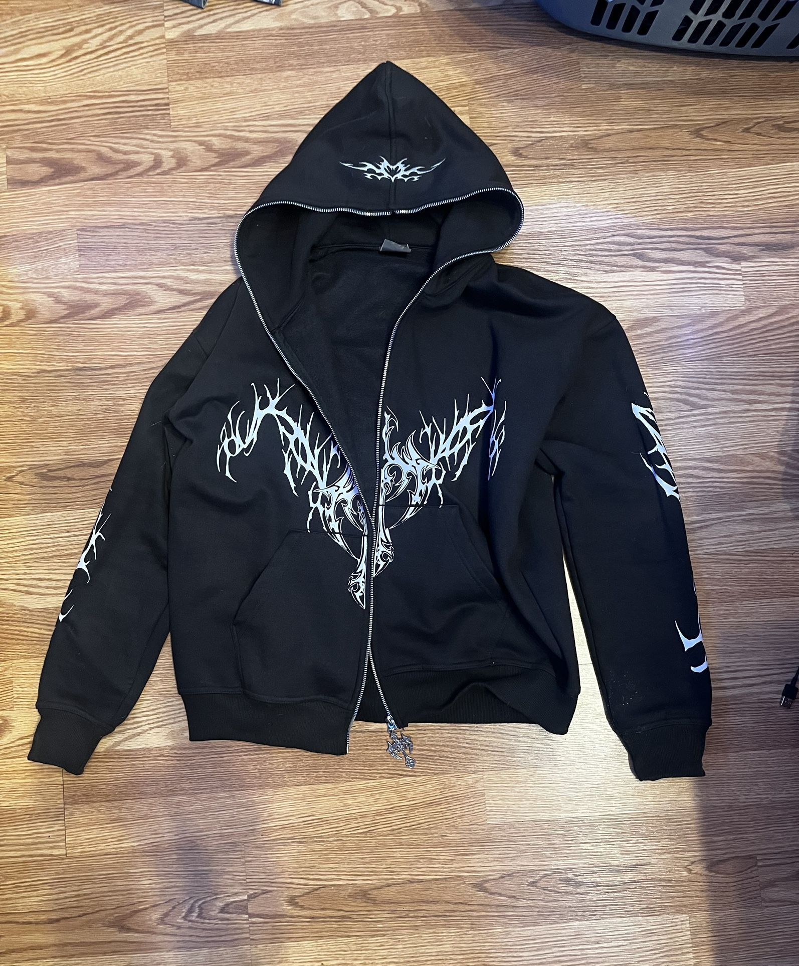 size: mens medium a few scuffs and stains but overall good quality with thick material