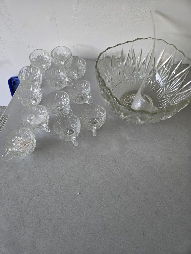 Includes bowl , serving spoon, and 12 cups. Local pickup.