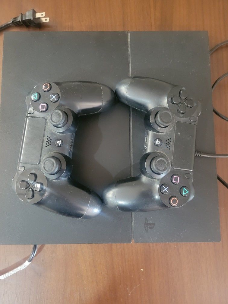 Selling my 500 GB matte black Playstation 4 with 2 controllers, charging cable, and 10 games. Willing to throw in an HDMI cable.
