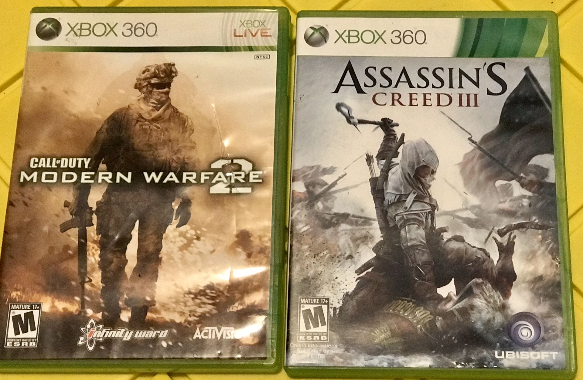 2 Xbox 360 games bundle in great condition... CALL OF DUTY MODERN WARFARE 2 & ASSASSINS CREED III ... hours of fun... Please see actual picture... Pick up only... Cash only ... se habla español