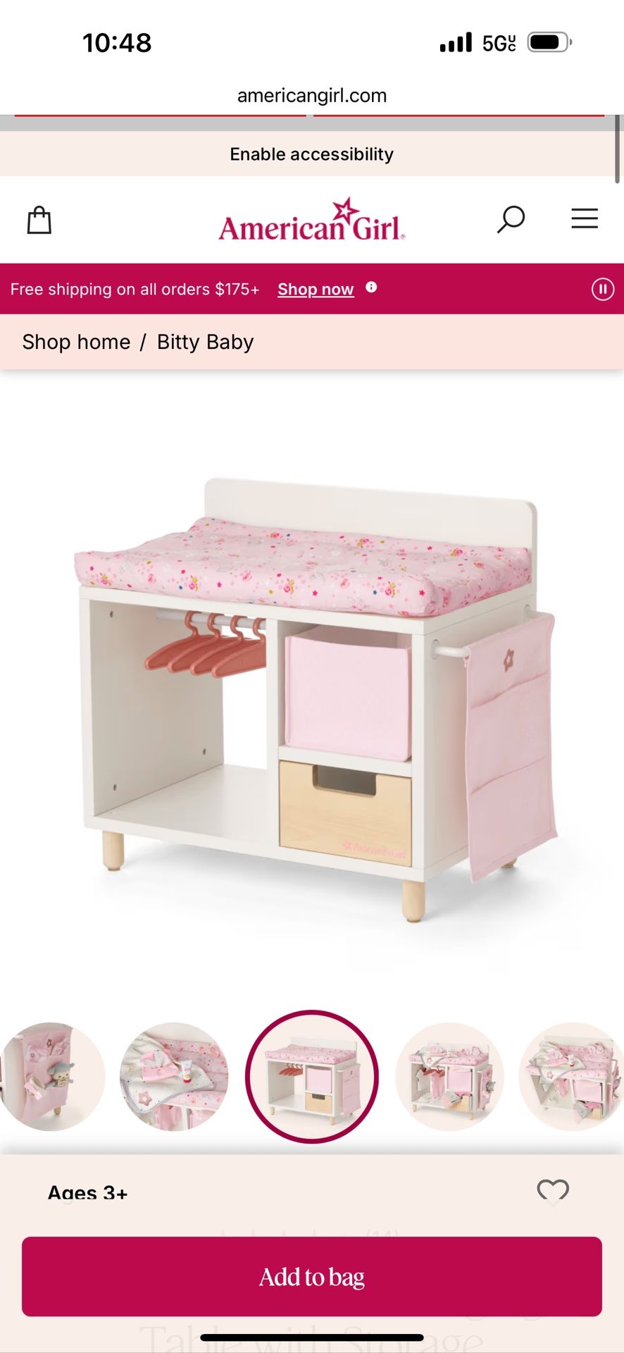Adorable “Dots & Blooms” Changing Table from American Girl – currently retails for $155! Includes: • Wooden changing table with built-in drawer • Floral & animal print changing pad • Dot-print felt bin + matching caddy • 4 hangers for outfits ✨ Gently used – excellent condition 🎀 Perfect for ages 3+ 🚭 From a smoke-free, pet-free home 📍Pickup at the 25th District Police Station parking lot (across the street) 💬 Asking $100 – open to best offer A great addition to any Bitty Baby collection!
