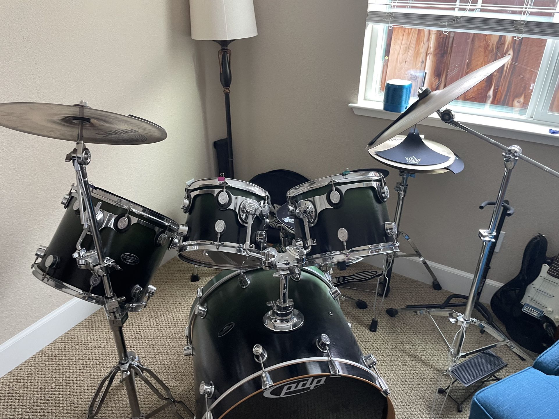 PDP MX Series all-maple drum kit in good working condition — solid intermediate setup for gigs, practice, or studio. Included: • PDP MX all-maple shells • All hardware (stands, pedals, etc.) • 3 Sabian XS20 cymbals (B20 bronze) — well used, no cracks or keyholing • Remo DW branded drum heads — used with normal wear, still playable Normal cosmetic wear from use, everything functions properly. Local pickup - Sacramento