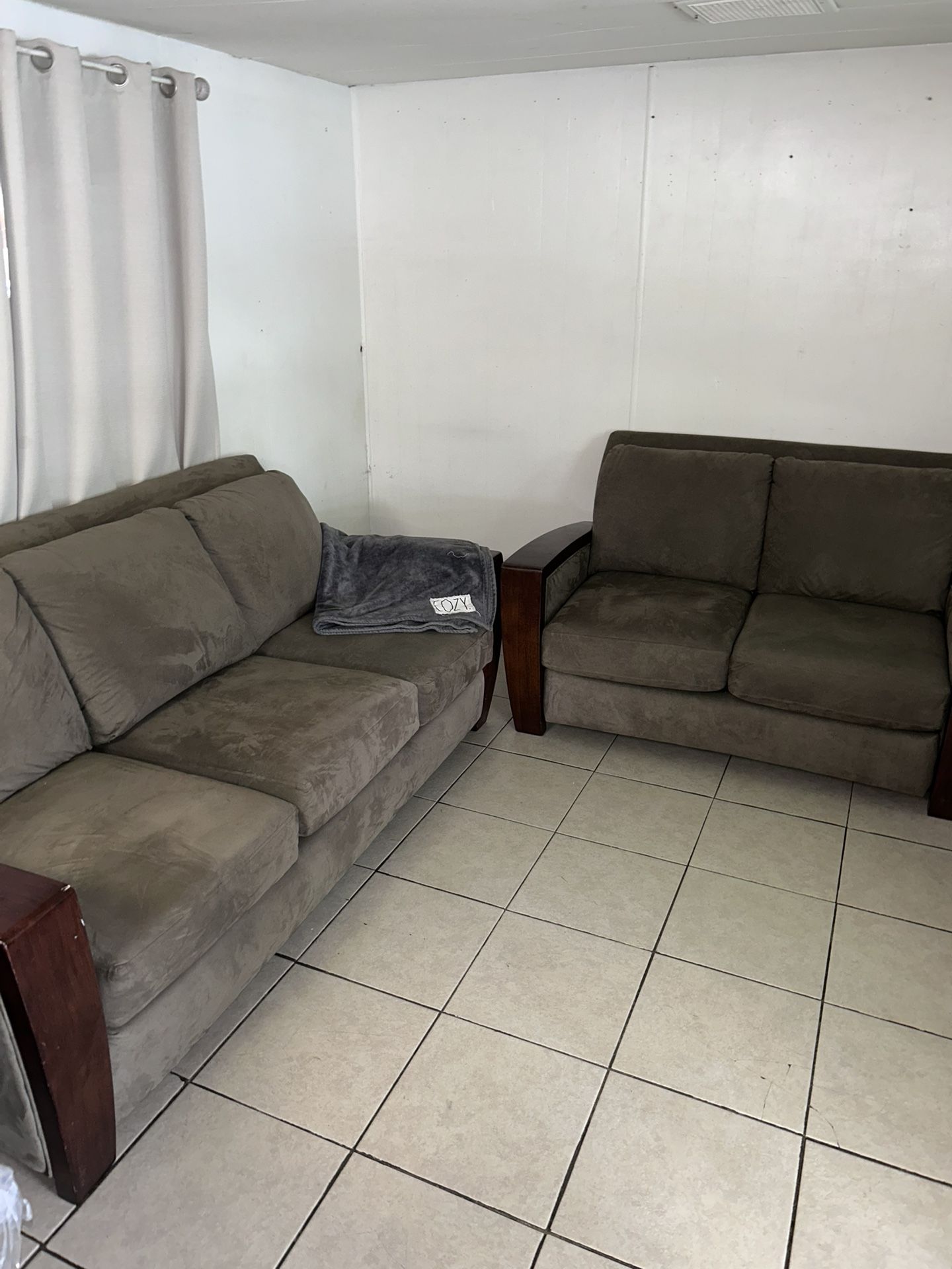 Olive green and dark brown No holes Small paint wear on the edge of the wood Smoke free home Sturdy