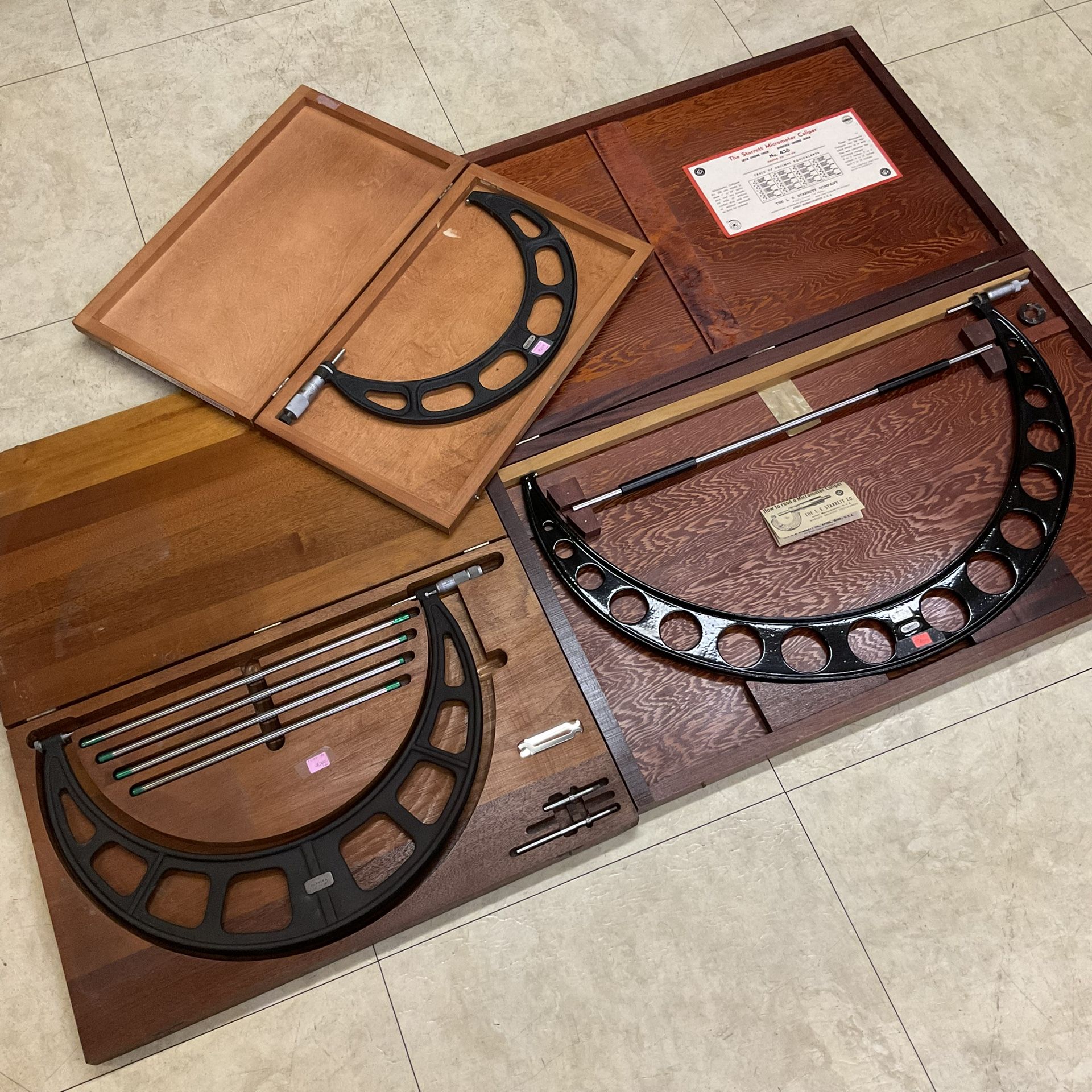 Each one being sold separately: Starrett Outside Micrometer 12” for $249 Lufkin Outside Micrometer 12-16” for $249 Starrett Outside Micrometer 23-24” for $599 Please contact if you are interested in any of them.