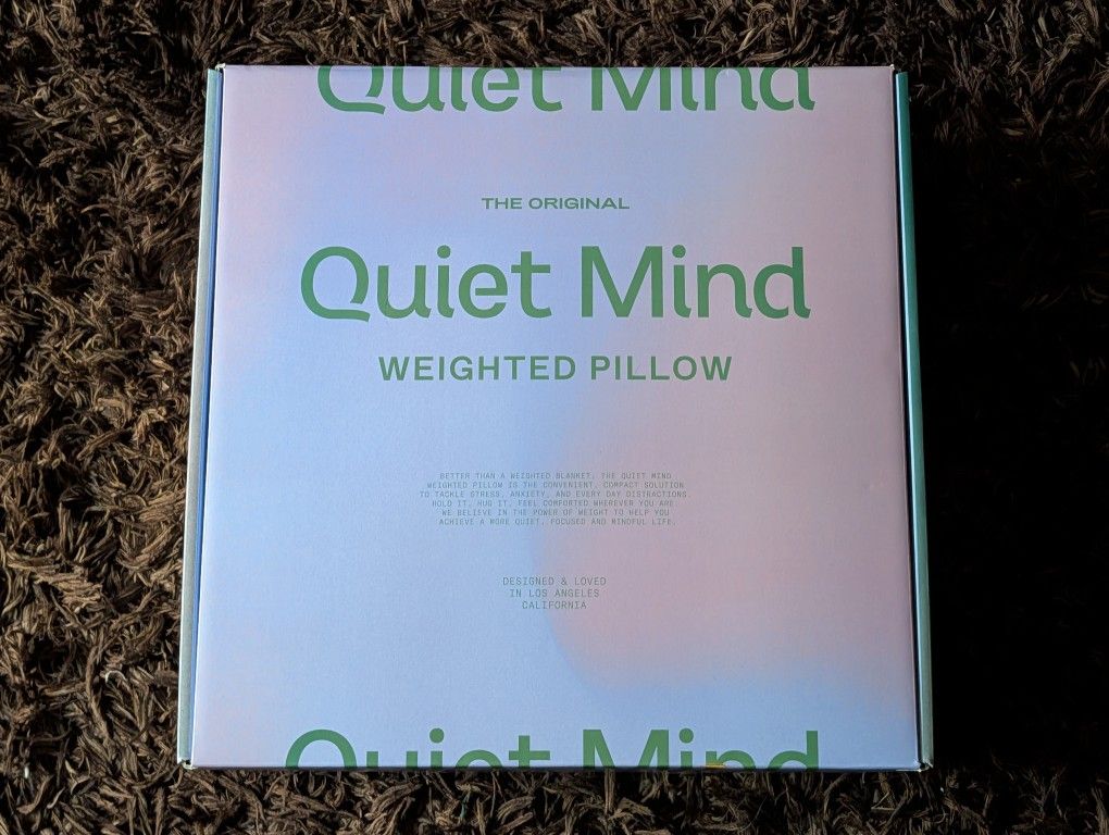 Experience the soothing comfort of a warm embrace anytime, anywhere with the Quiet Mind Original Weighted Pillow in a calming blueberry blue color. This innovative comfort tool is designed specifically for adults seeking a moment of peace. Filled with recycled glass beads that provide a substantial, comforting weight, this 12-pound pillow helps ground your body, encouraging a pleasant and relaxed feeling. Whether you are meditating, watching a movie, or simply unwinding after a busy day, this soft and plush 18-inch square companion provides discreet, comforting relief. Embrace your new favorite source of calm. Quiet Mind The Original 12 lb Weighted Pillow | Blueberry Blue Huggable Comfort Aid for Adults
