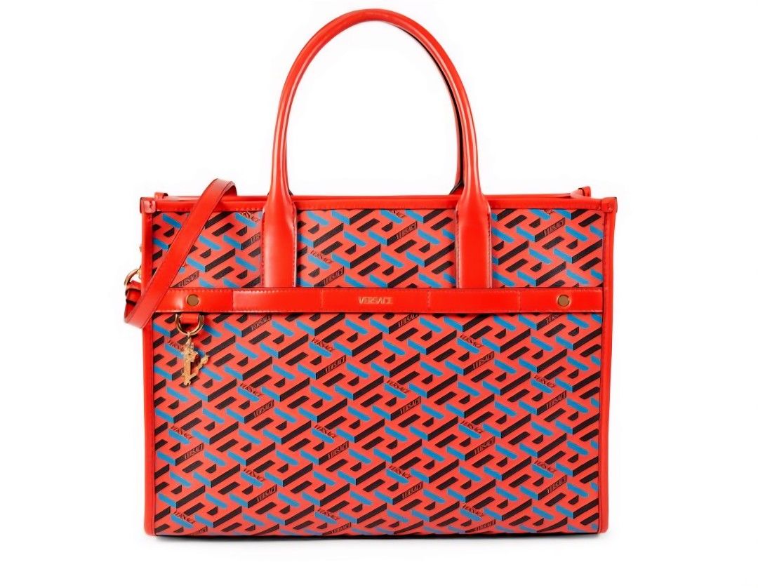 NEW Versace La Greca Logo Leather & Coated Canvas Tote Purse With Dust Bag