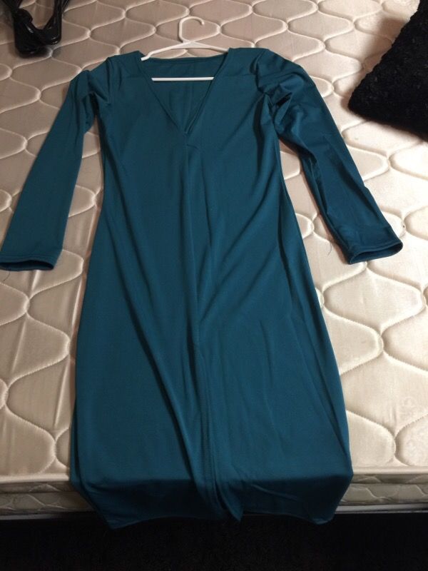 Never worn blue dress w slit in the back , size M in women's