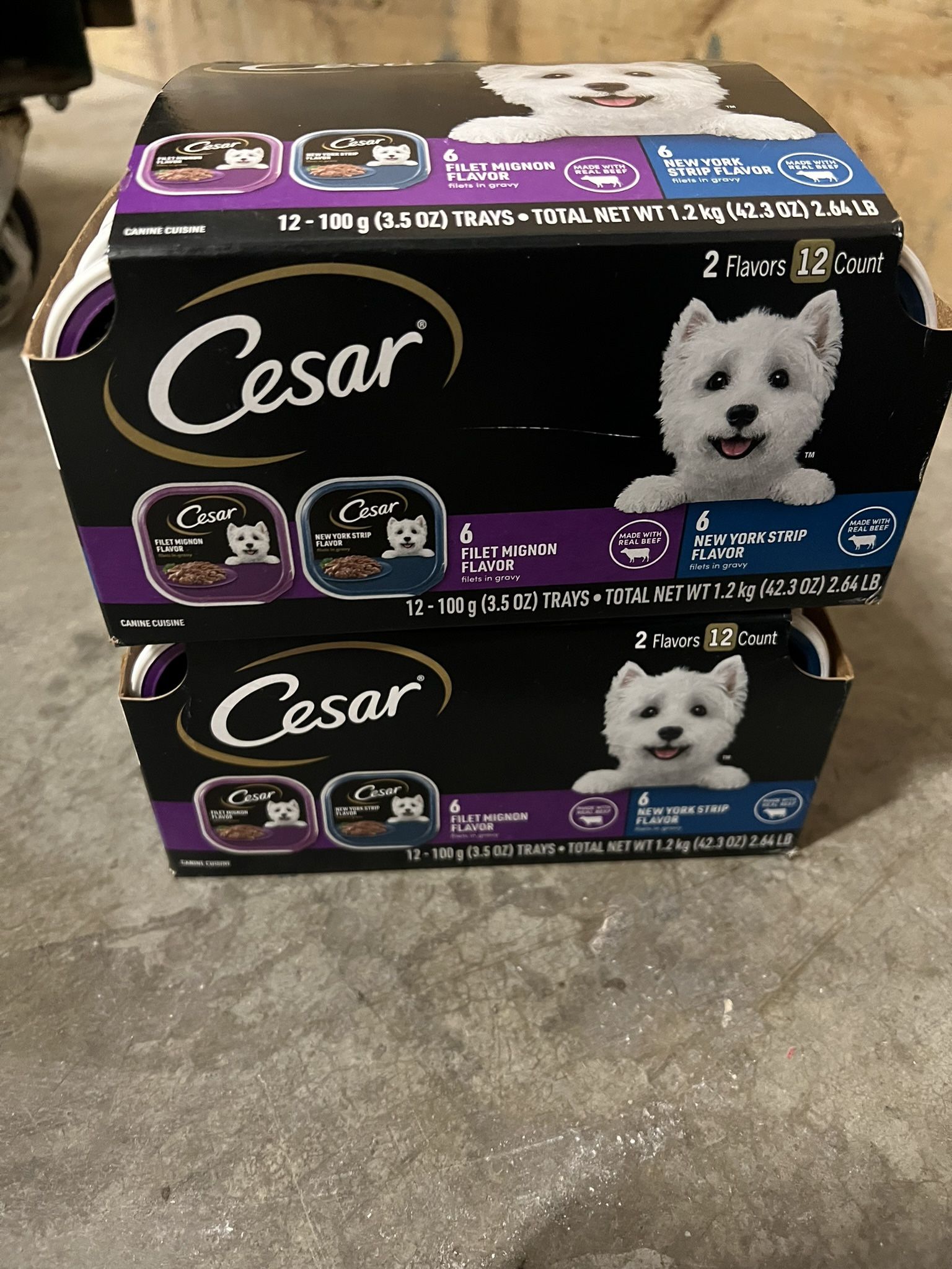 Cesar 12pk case. Beef and chicken flavors, 4 cases at $10 each. All four for $35. Product not opened, fresh not expired. Pick up only