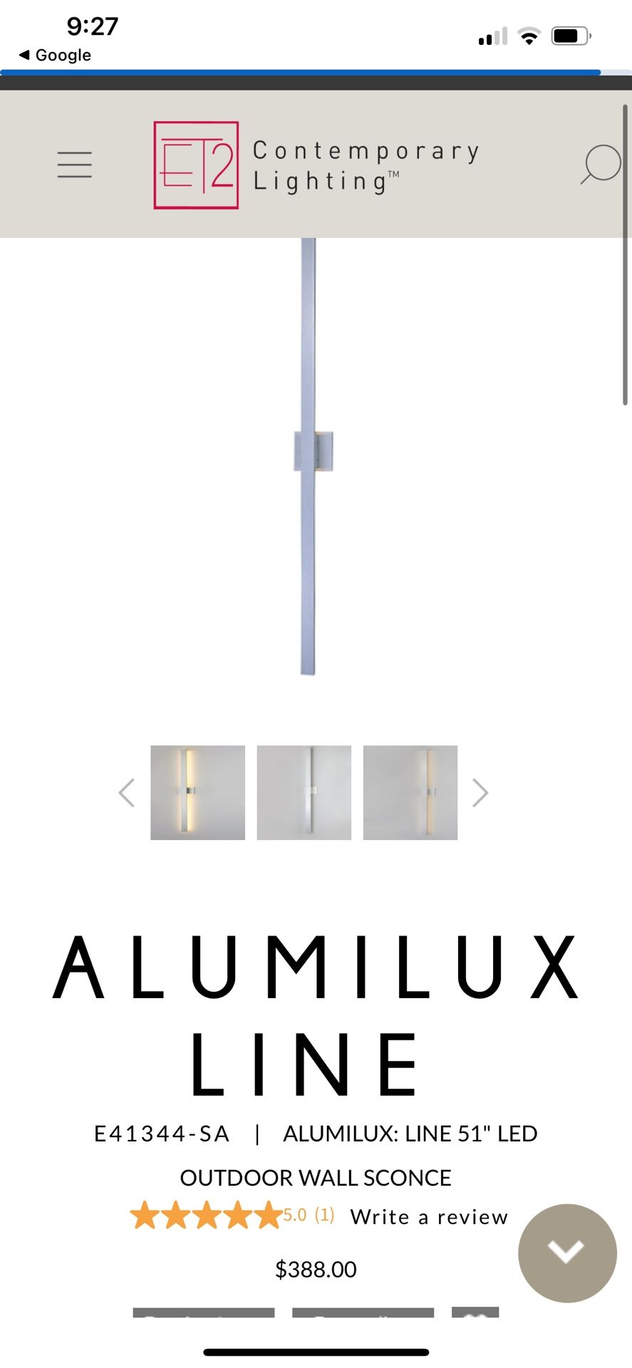2 New in box lighting setup purchased from ET2 Contemporary Lighting. 30 day window passed to return them so I’m stuck with them. Original price is $388 each. https://offerup.com/redirect/?o=aHR0cHM6Ly93d3cuZXQyb25saW5lLmNvbS9wcm9kdWN0L291dGRvb3ItbGlnaHRpbmcvb3V0ZG9vci13YWxsLW1vdW50L2FsdW1pbHV4LWxpbmUtNTEtbGVkLW91dGRvb3Itd2FsbC1zY29uY2UvRTQxMzQ0X1NB