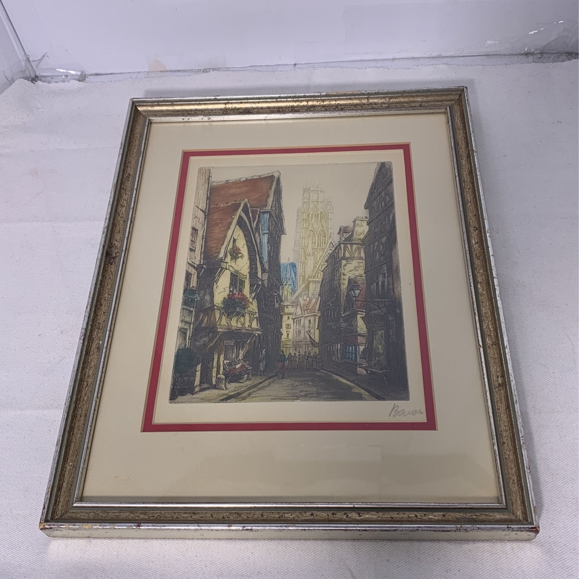 Framed MARCEL JULIEN BARON (French Modernist 1(contact info removed)) Pencil Signed Color Etching No4. Professional Framing Frame Measurements 11”X 14”