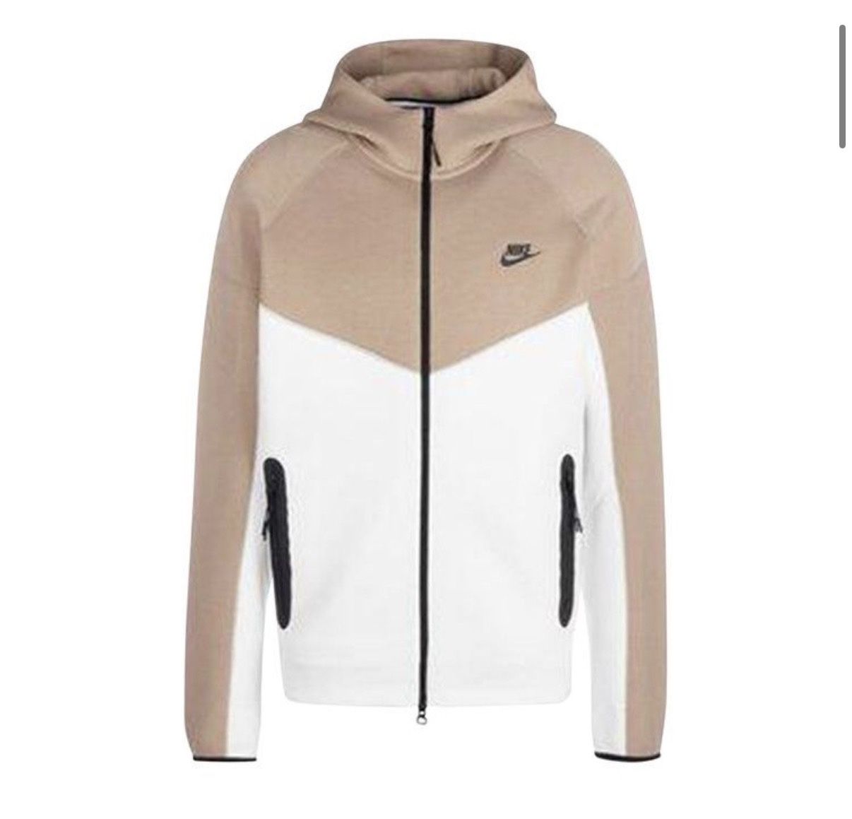 Nike tech fleece zip up hooded jacket summer white khaki youth XL