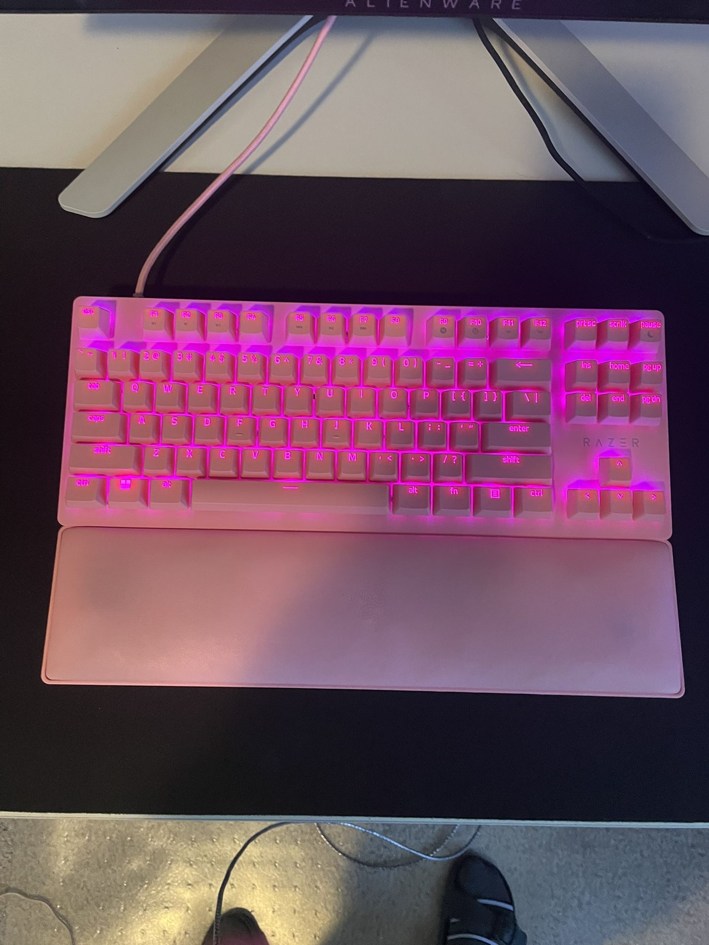 Razer Huntsman V2 Ten-keyless Pink and Red Linear Switches It’s like new, only reason im getting rid of it is because i need a number pad/ wider keyboard for my personal comfort. Also have a set of black pudding keycaps i can include.