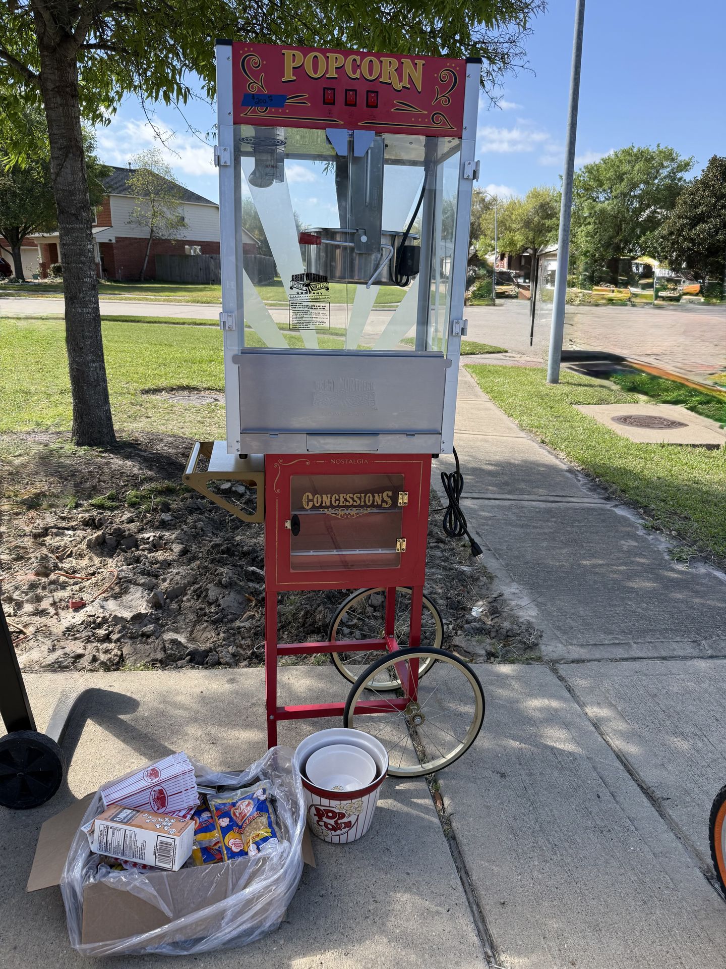 Popcorn Machine excellent condition. Pick up in Katy. $200 comes with a box of popcorn
