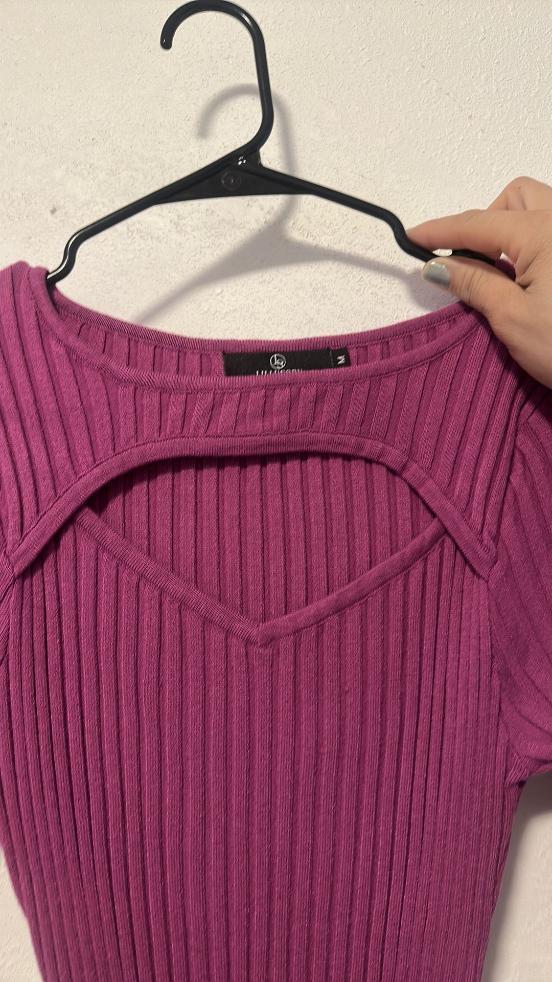 Stretchy-dress V neck fuchia long sleeve