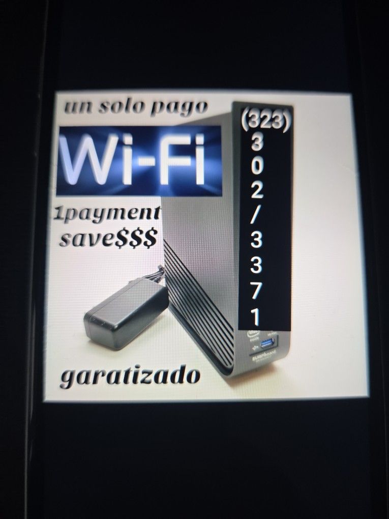 No más pagos mensuales. Instalacion y caja de wifi incluida Garantía de un año tendrias internet gratis alluda gratis. Por un solo un pago es internet super rápido 5G. Para más información marque al número que aparece en la foto Gracias ----‐----------------- No monthly payments. Installation and wifi box included get One year guarantee. For just one payment it is super fast 5G internet. For more information call the number that appears in the photo Thank you