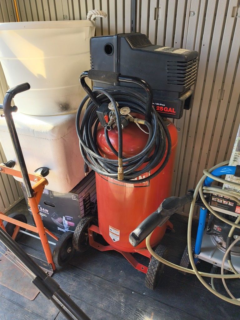 5.5 single cylinder/oil free 25 gallon used a couple of times.
