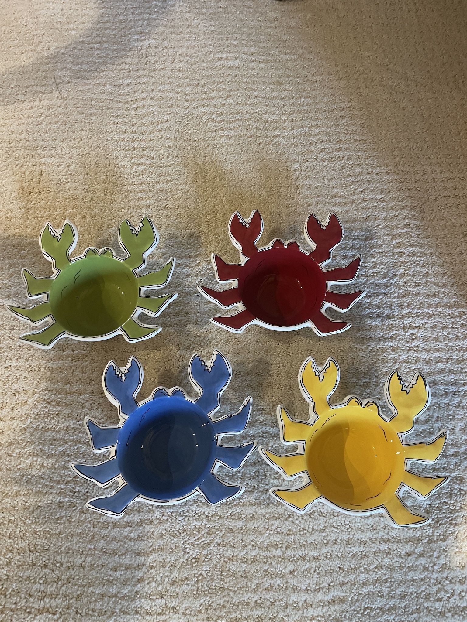 4 glass crab dishes Good for snacks, appetizers Porch pickup in Corona Del Mar Cash or Venmo