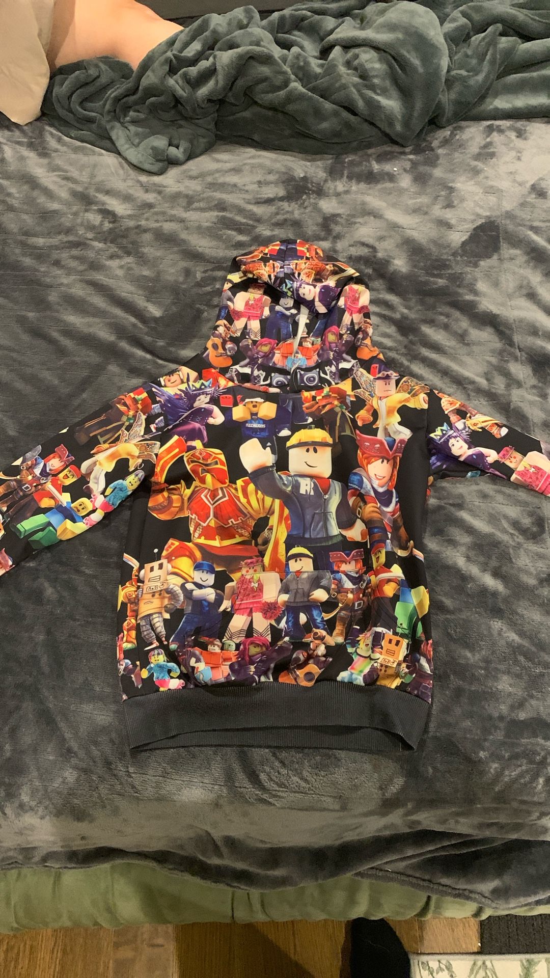 “Roblox kids’ hoodie, size Medium. Made of soft polyester, very comfortable and perfect for everyday wear. No rips, no holes, and perfectly clean. Great for school, play, or Roblox fans! Grab it while it’s in excellent condition!”