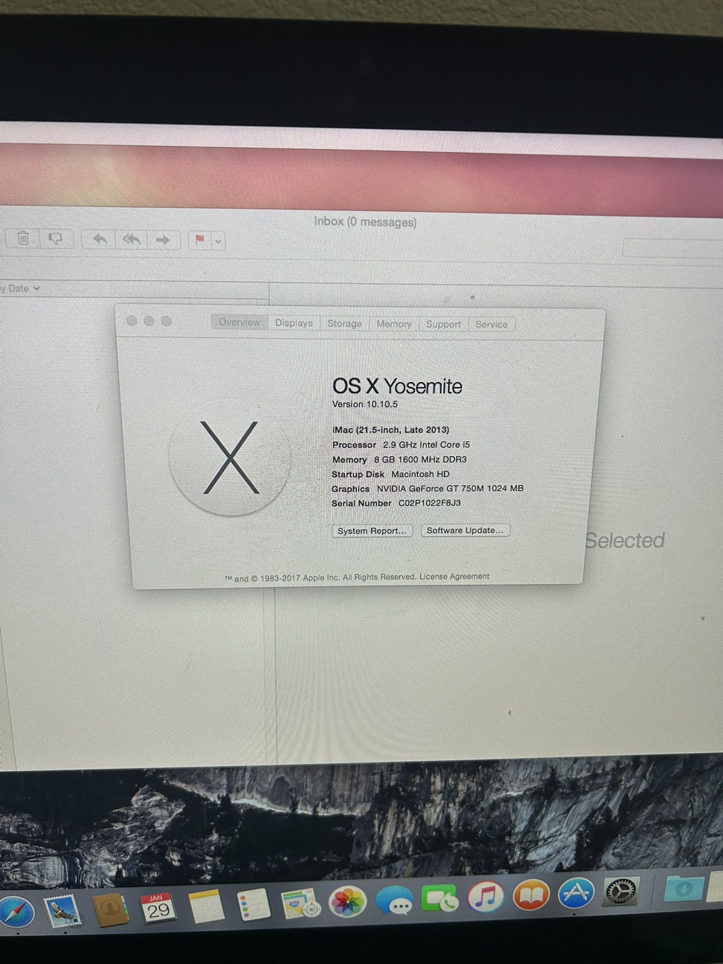 Late 2013 iMac 21.5 inches, 8gb, 2.9 ghz intel core i5. Very fast