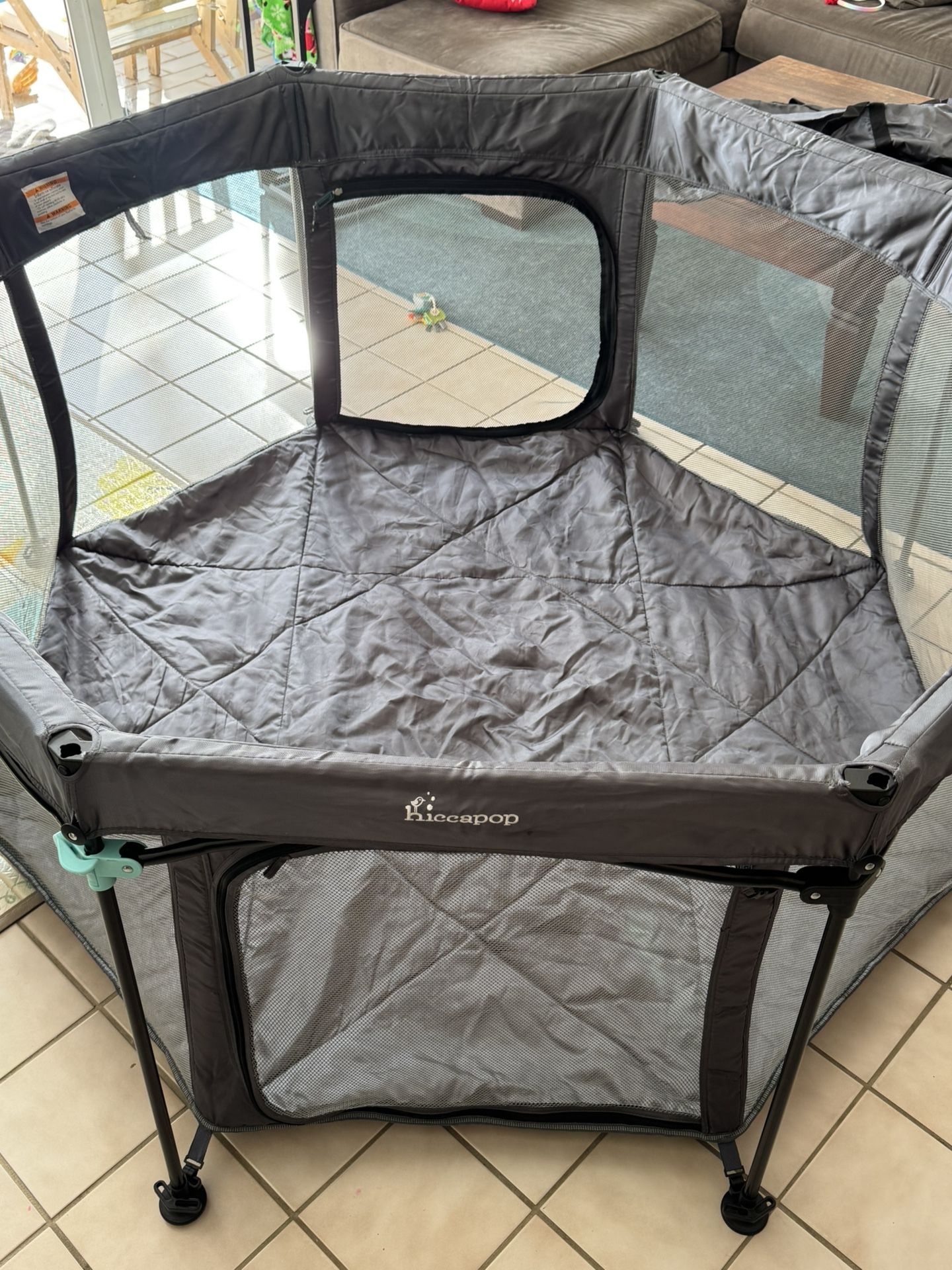 Hiccapop 69’play pen in great condition, only been used a couple of times. It comes with its carrying case but not the dome. Please see the link below they have been sold out for months. Originally purchased for 175$ 80$