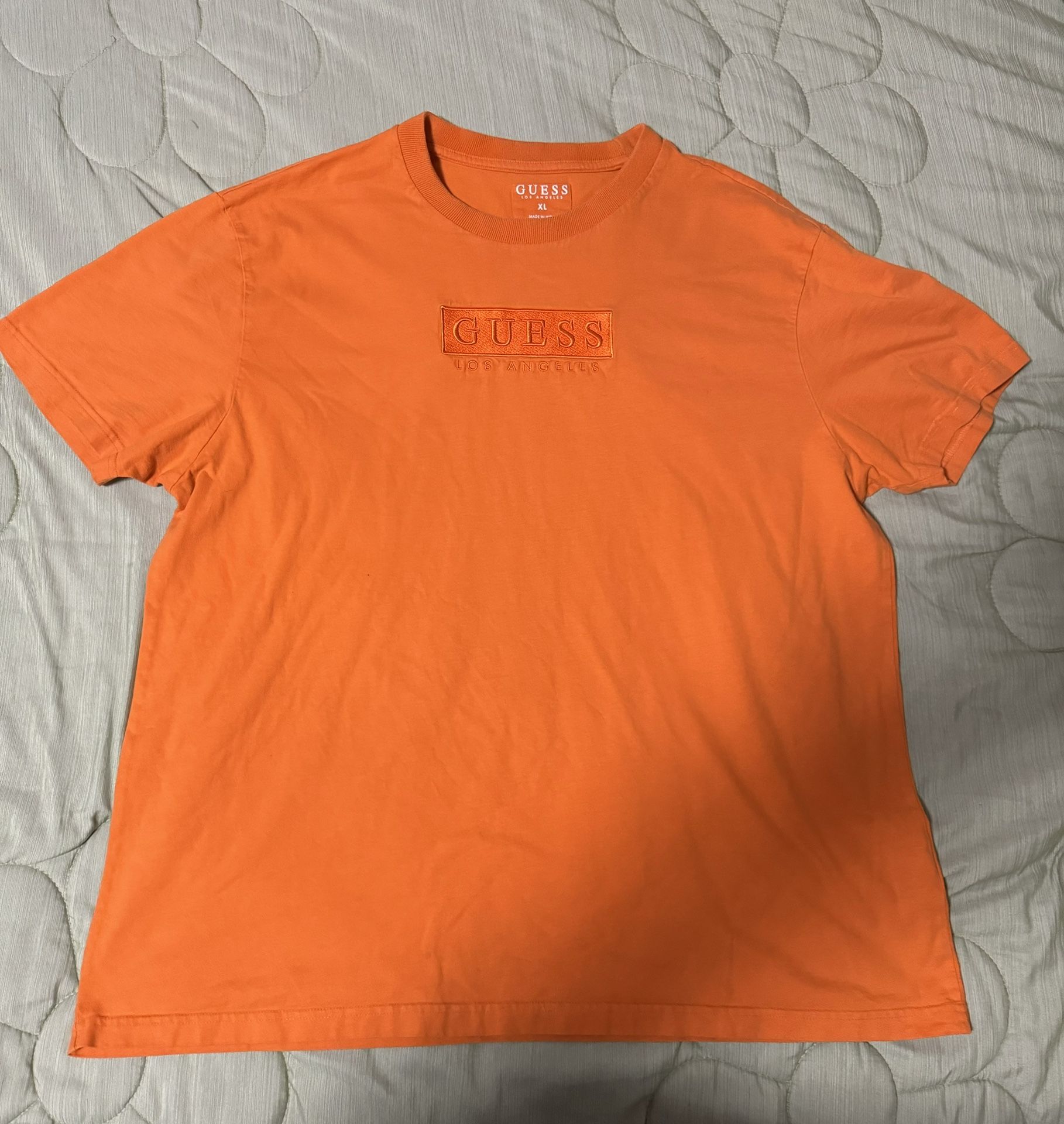 Selling my used Guess Orange Oversized Logo T-Shirt. Size XL. Selling because I don’t wear it anymore. Asking $10 OBO, thanks and have a good one