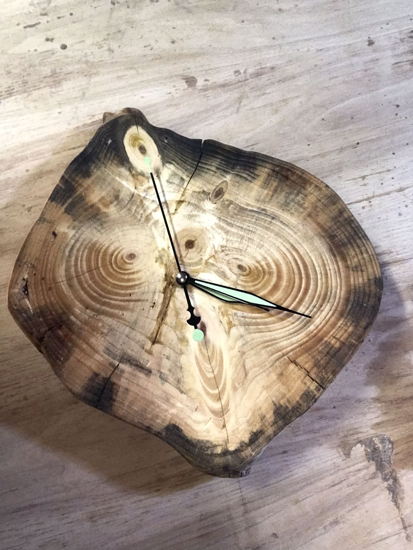 Clock. Live edge knotty pine clock. Roughly 10-12” across