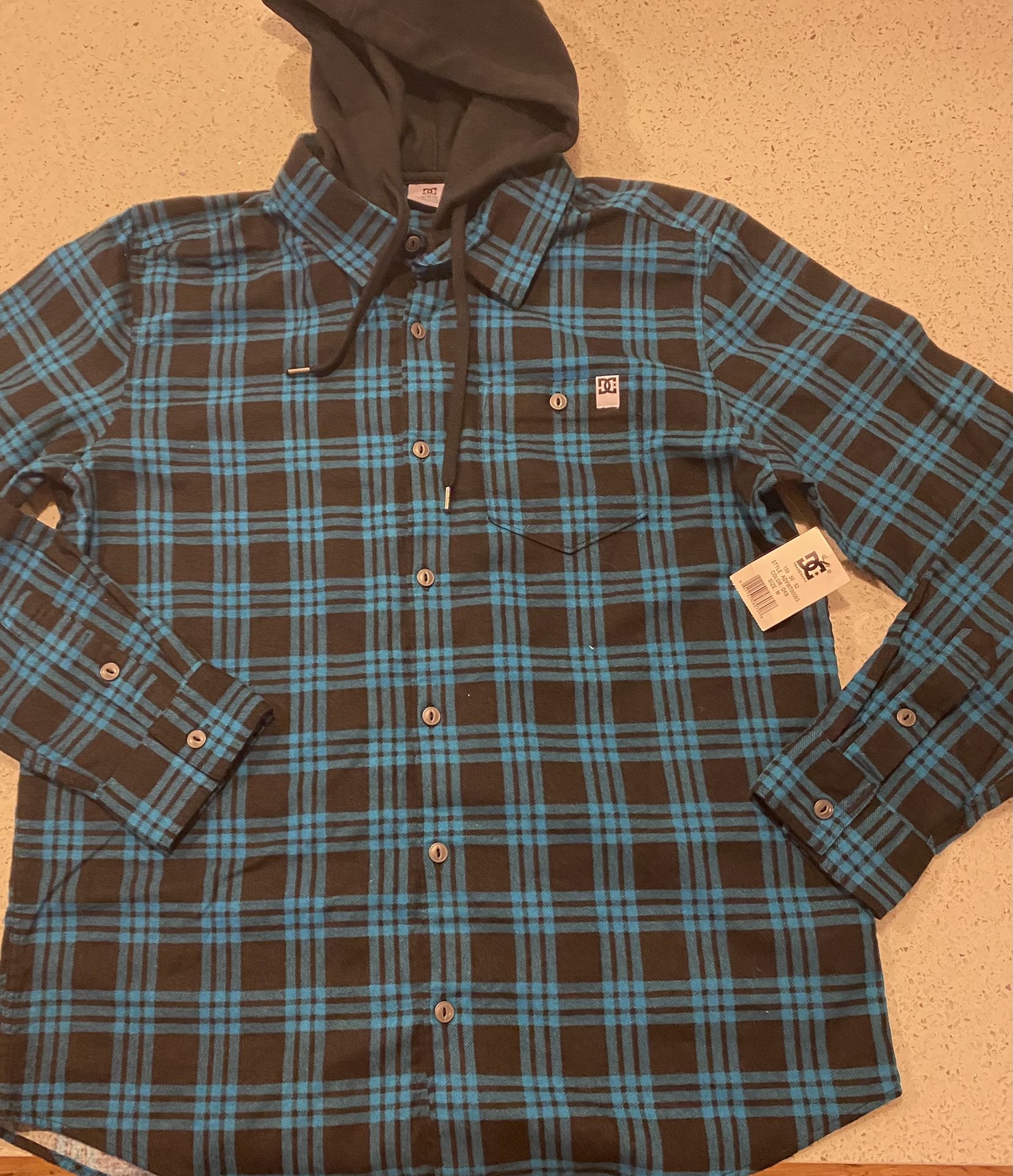 Men’s *NEW * DC Plaid button up plaid shirt w/hoodie