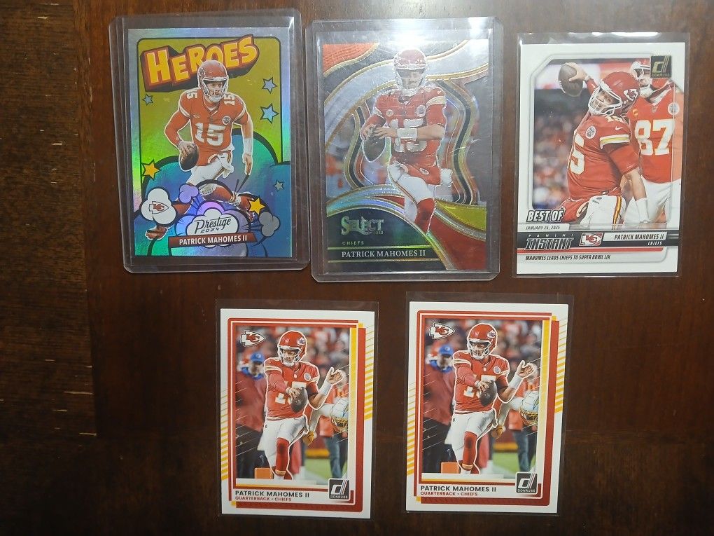I have this 5 patrick mahomes cards for sale some are months pulls & others fresh pulls im not looking I want $11.55 firm firm firm for all 6 offers will be ignored 1 heroes holo insert 1 red yellow holo die cut base 1 insert paper insert 2 bases papers
