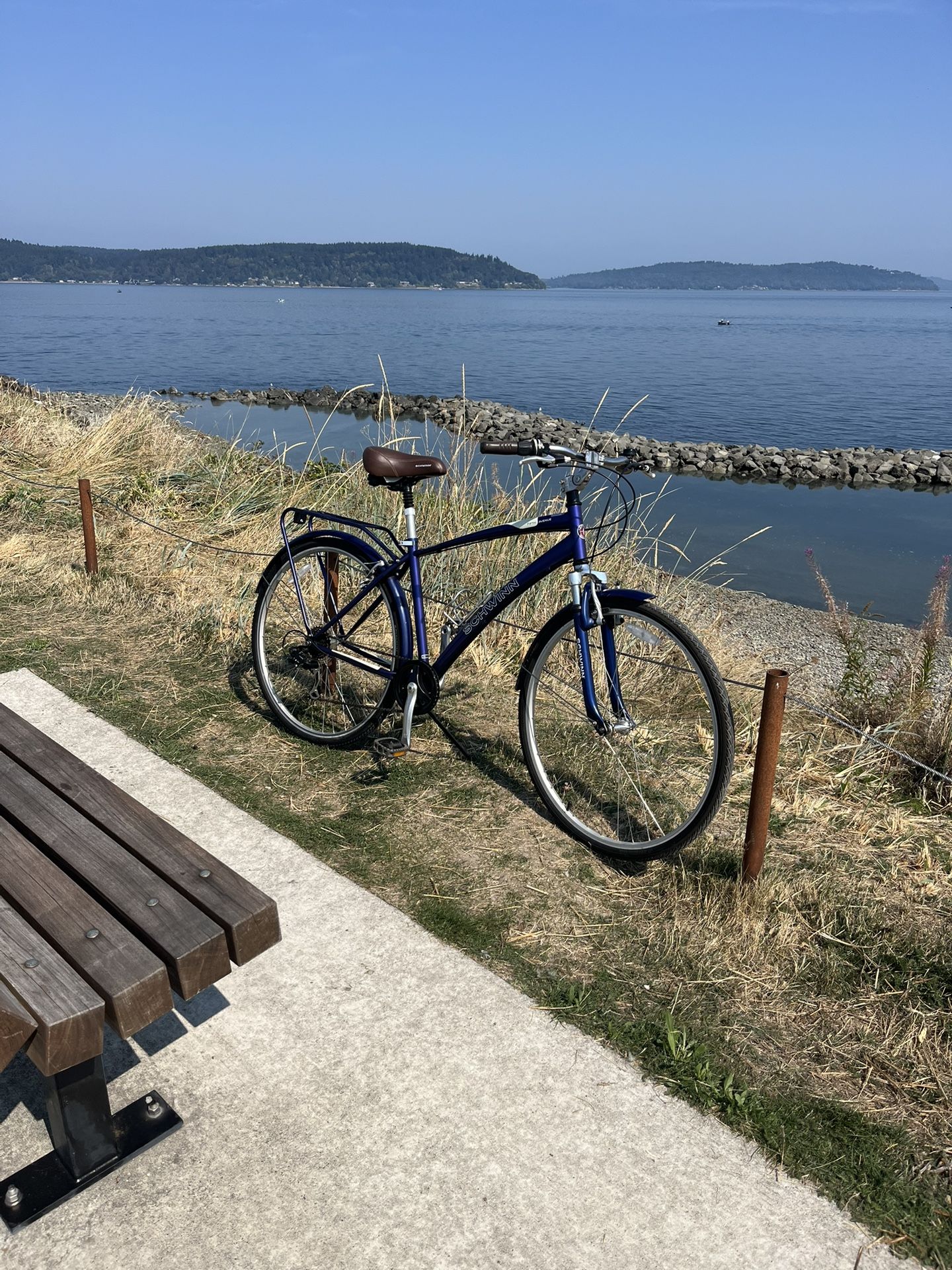 E bike Schwinn fifth avenue- durable steel city style frame - 7 speed shimano derailer - front suspension and comfort seat. Matching Fenders and rack. 700 c wheels - v brakes - rides very smooth. Make me an offer
