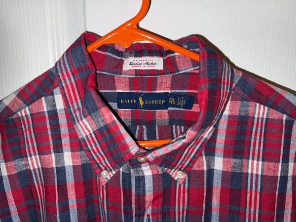 Laundered and pressed. No issues. Red and blue size XL. Linen. Cash only Can meet to exchange. Oro Valley area. Work at UofA.