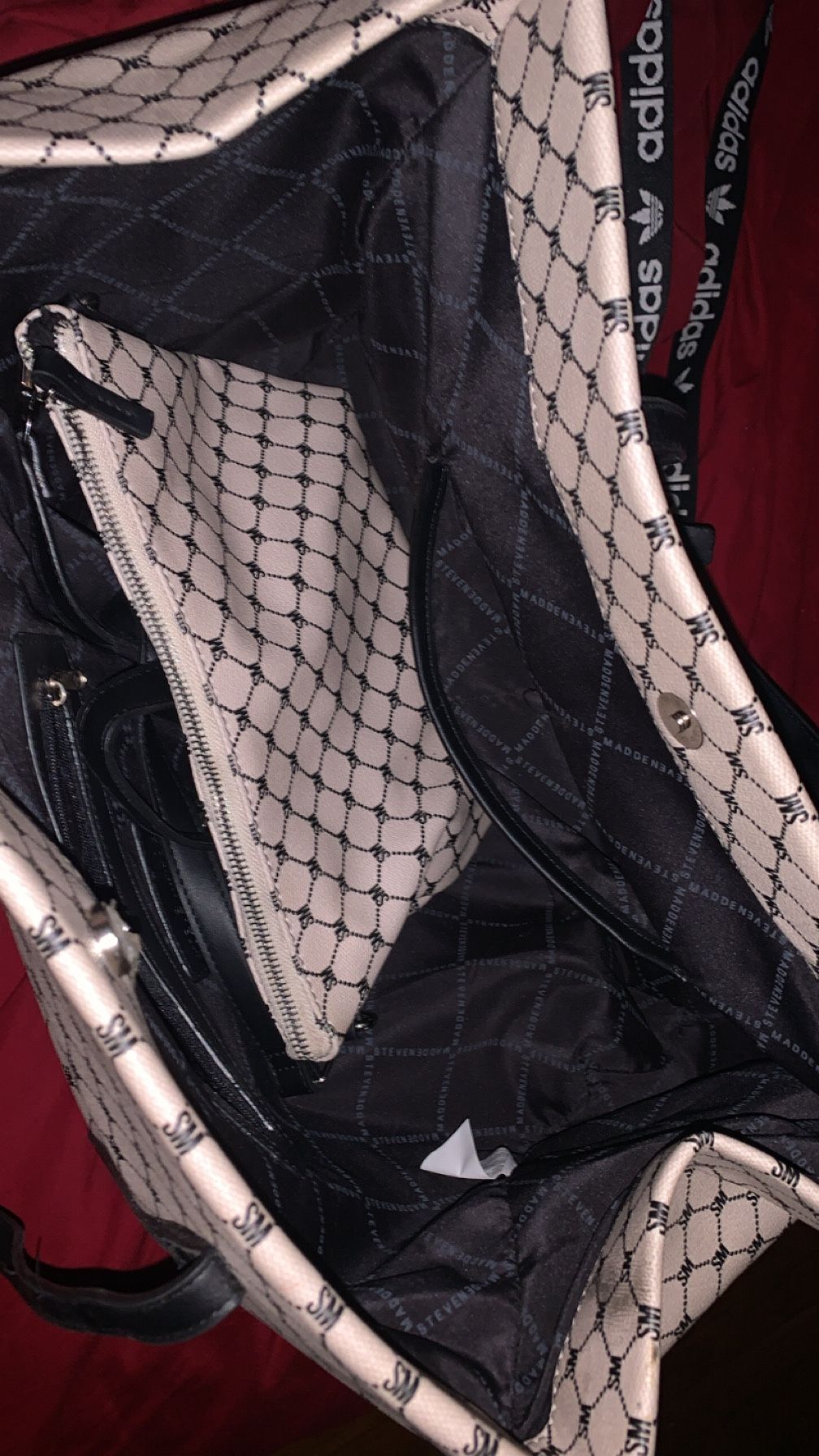 One cross body Steve Madden logo bag and one large size Steve Madden handbag it’s super spacious on the inside