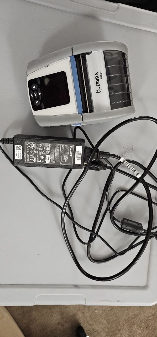 Zebra ZQ620 health care Portable Label printer Small portable Zebra ZQ620 printer, prints up to a max of 2.8 inches in width. I have some label rolls if you are interested as well. In perfect functioning condition, wifi functionality is missing but it has blue tooth. This is the healthcare model, it is white in color and chemical resistant body for sanitizing regularly.