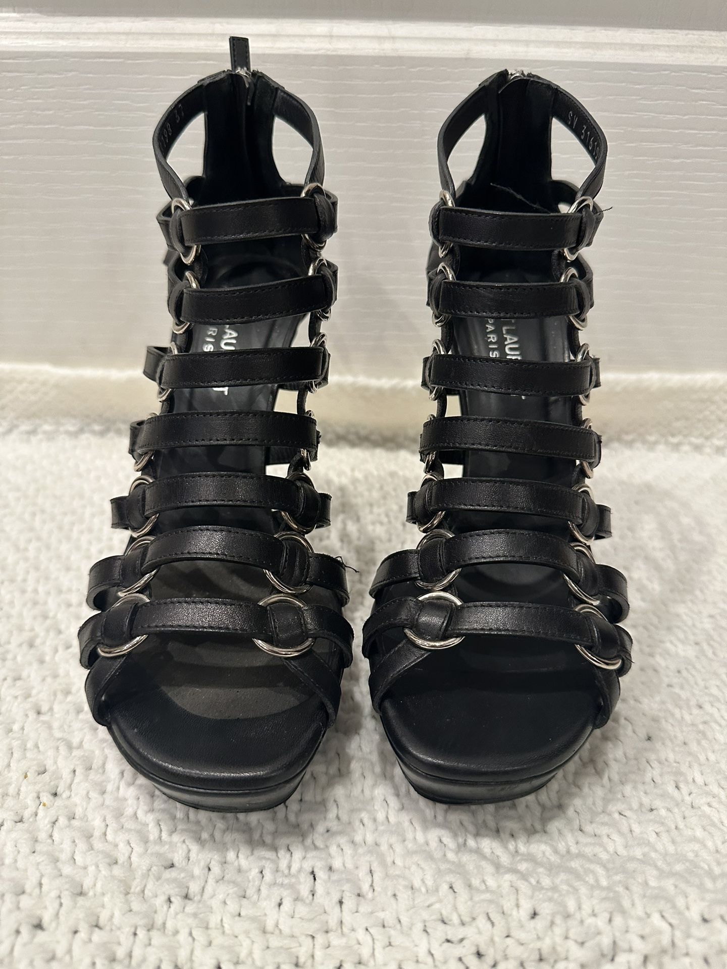 Saint Laurent Nina Cage Heels – Black Calfskin Size 37 (US 7-7.5)