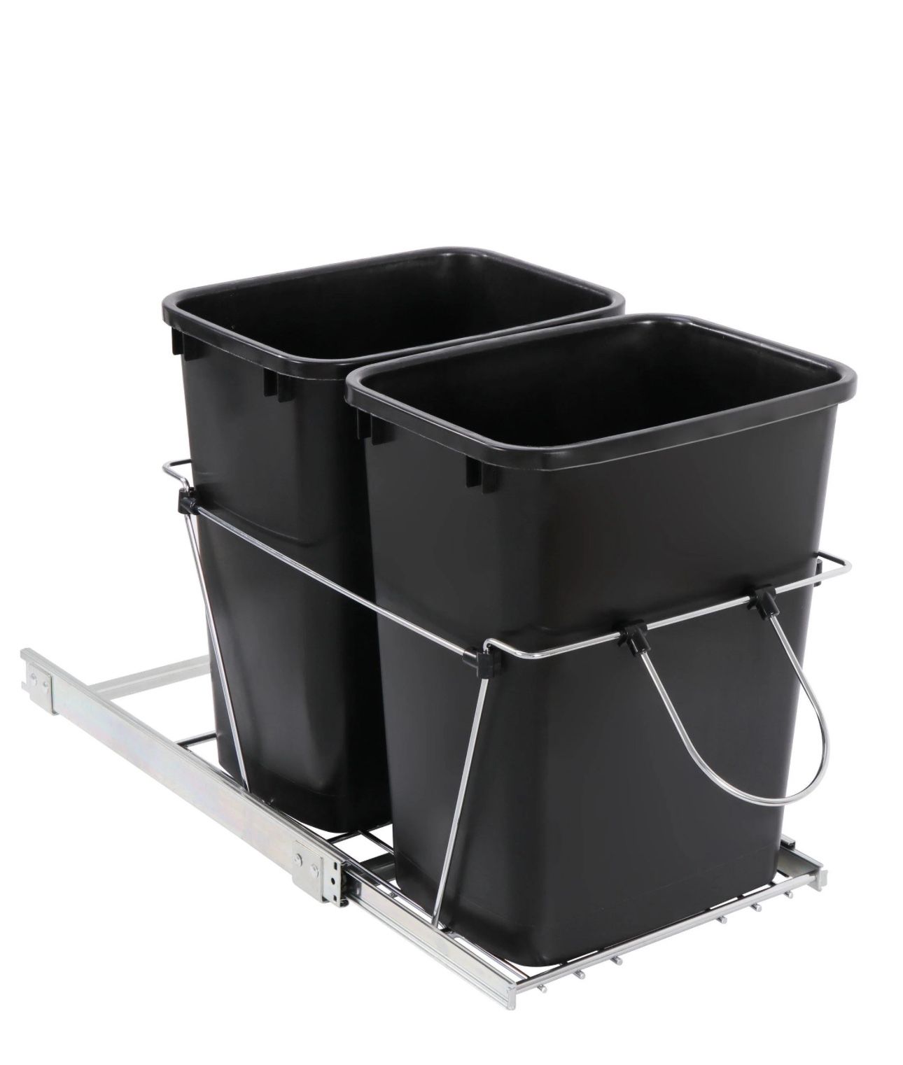 Cabinet Sliding Waste Bin for Kitchen Duo Pull-Out Recycle Cans Easy Access no show trash container