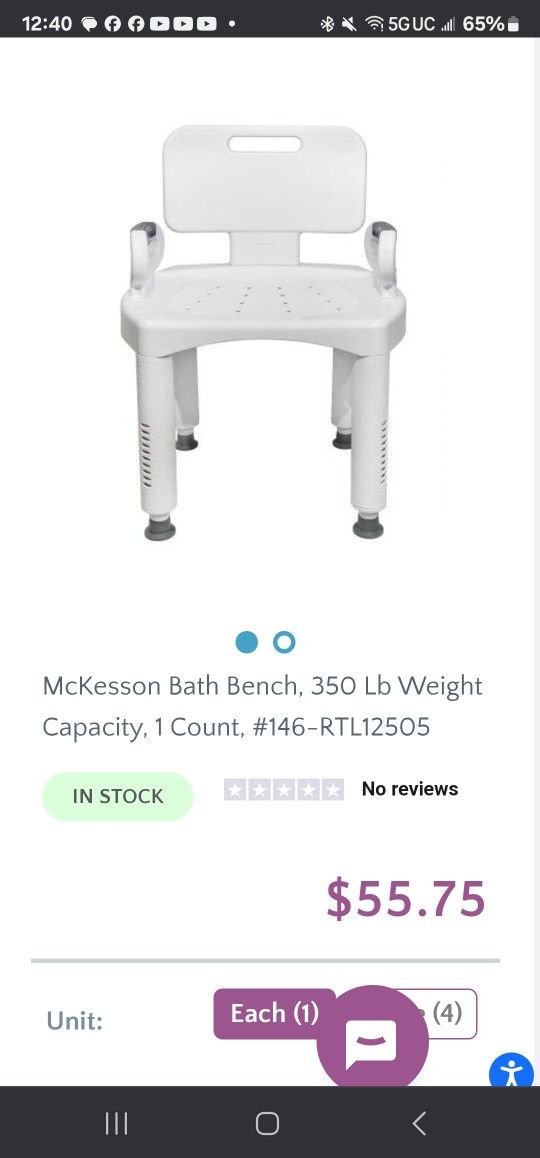 McKesson Bath Bench, 350 Lb Weight Capacity, 1 Count, #146-RTL12505