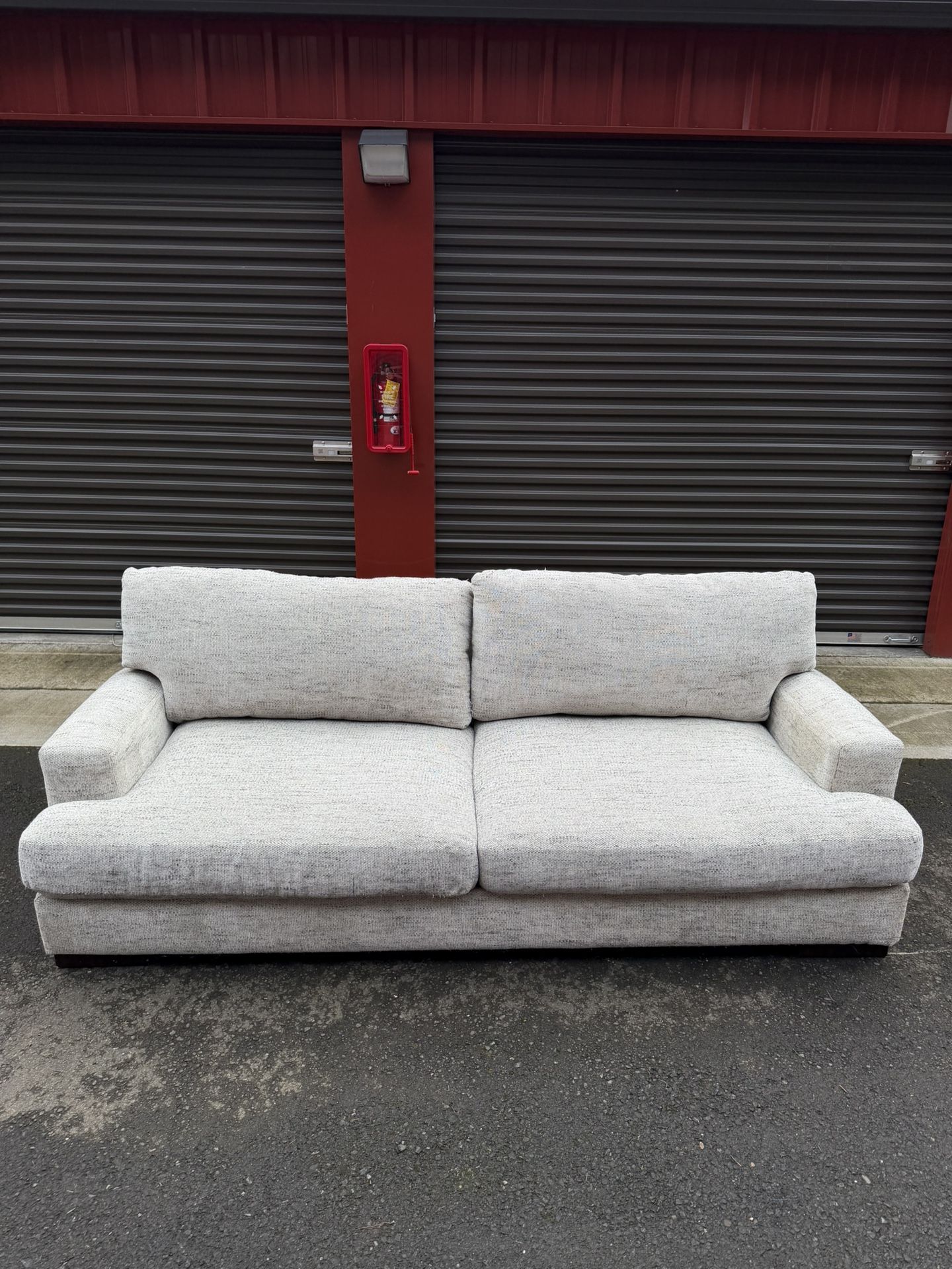 Gray 3-Seater Sofa Comfortable modern 3-seater sofa in light gray fabric. Soft cushions and deep seating make it perfect for living room or apartment. Clean modern look that fits many interiors. Good condition. Size (approx) • Length: 84-90 in • Depth: 35-38 in • Height: 32-35 in
