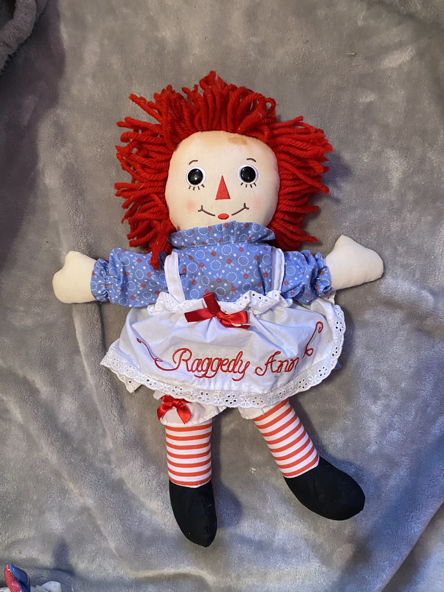 15" Raggedy Ann Traditional Cloth Doll Button Eyes Embroidered Features