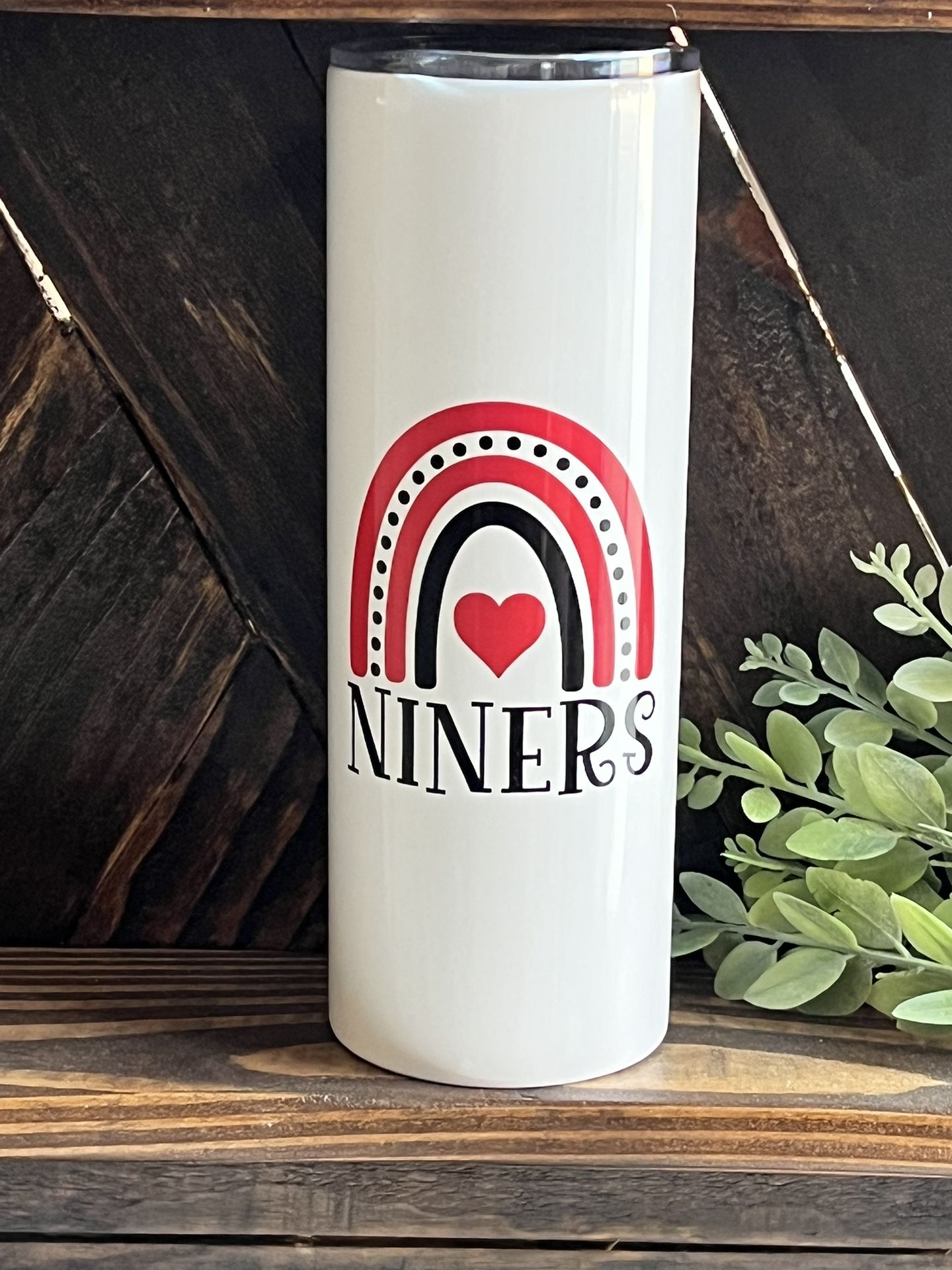 Hey there, Niners fan! Want to sip your drink in style? Look no further than our 20oz Skinny Tumbler. With its cool design, this tumbler is perfect for showcasing your personal style while supporting your favorite team. This lightweight gem is not only practical but also a great gift option for your loved ones. Whether you're chilling by the TV or joining the game-day madness, this tumbler will keep your drink at the perfect temperature. Stay hydrated and show off your Niners pride with every sip! But wait, there's more! Want a different design? We can make it happen! 20oz See profile for more