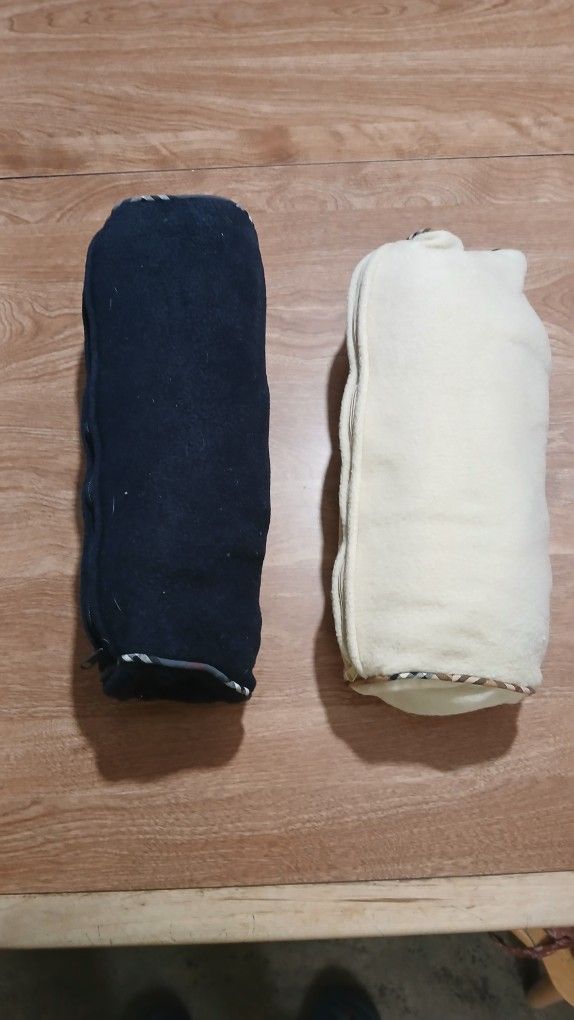 Two-in-one pillow and blanket. In good condition, barely used. The pillow is a case/cover, with the blanket rolled up neatly inside of it. The blanket itself is 40 x 63 inches. $5 each.