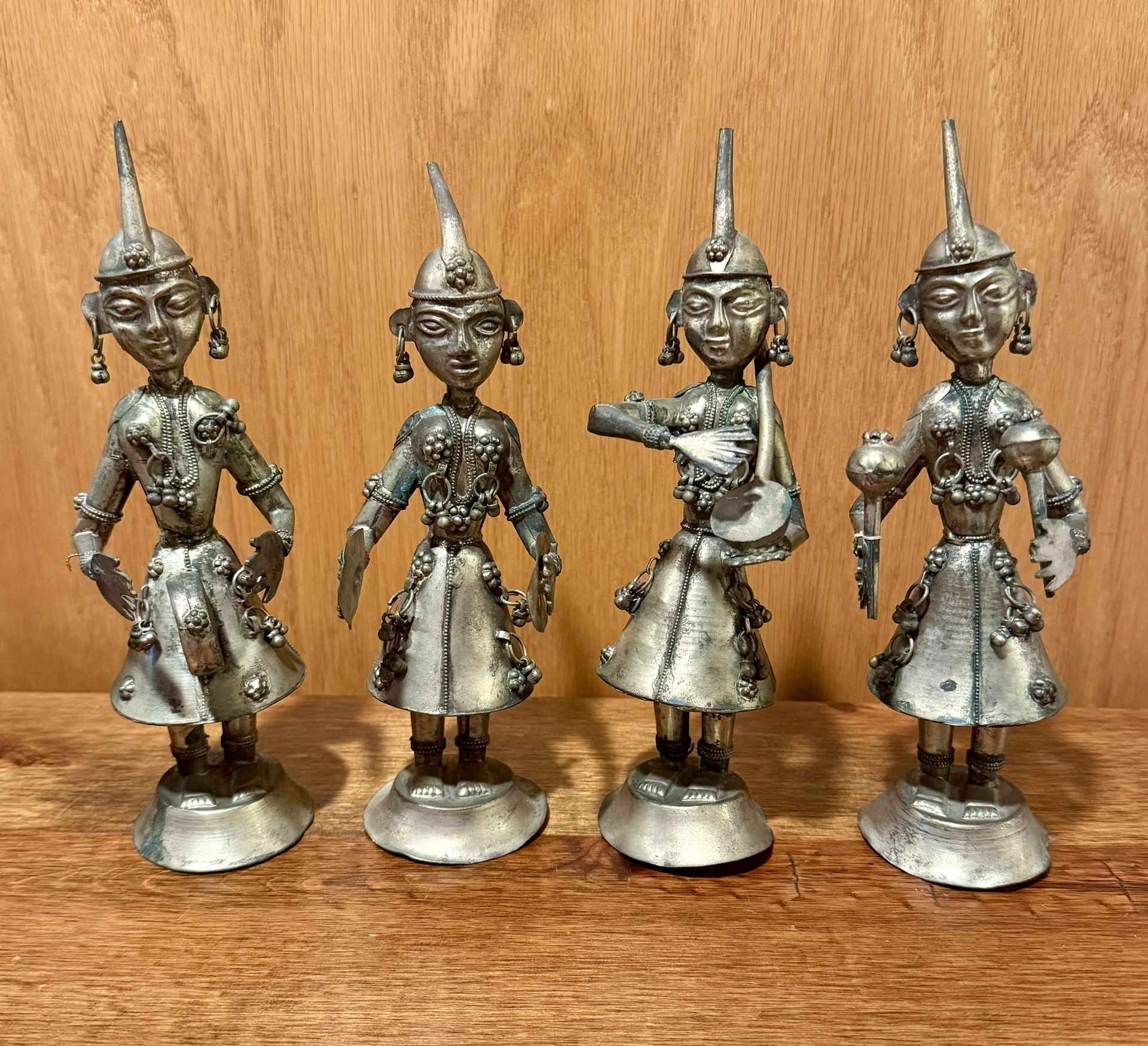 Set Of 4 Antique India Hindu Silver-Tone Handmade Metal MUSICIAN Figurines 7”