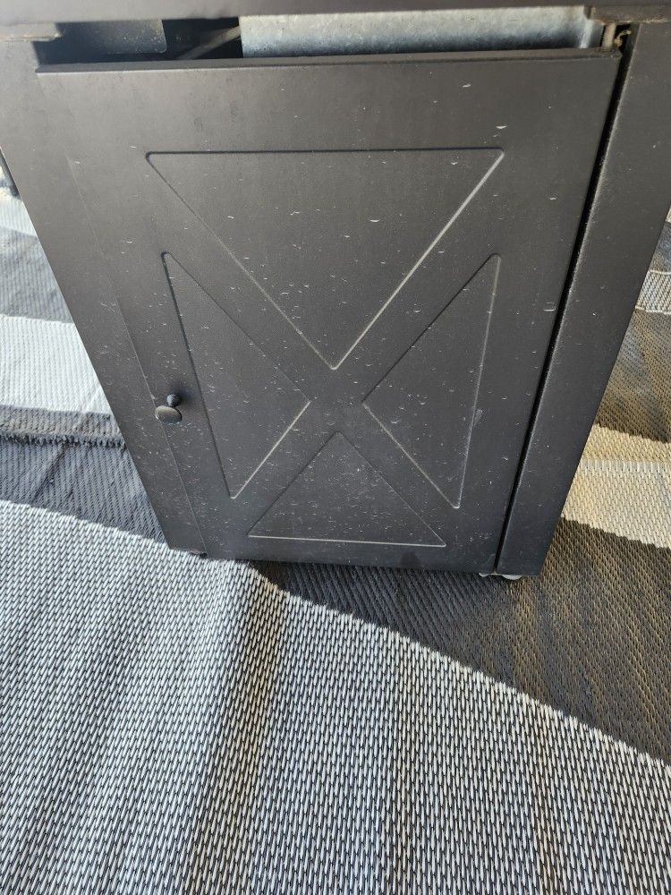 Used 3 times. The unit is like brand new. The unit is 28"x28"x25"H. ,automatic igniter, uses a 20 gallon propane tank (not included), and generates 48,000 BTU. Lava rock included.