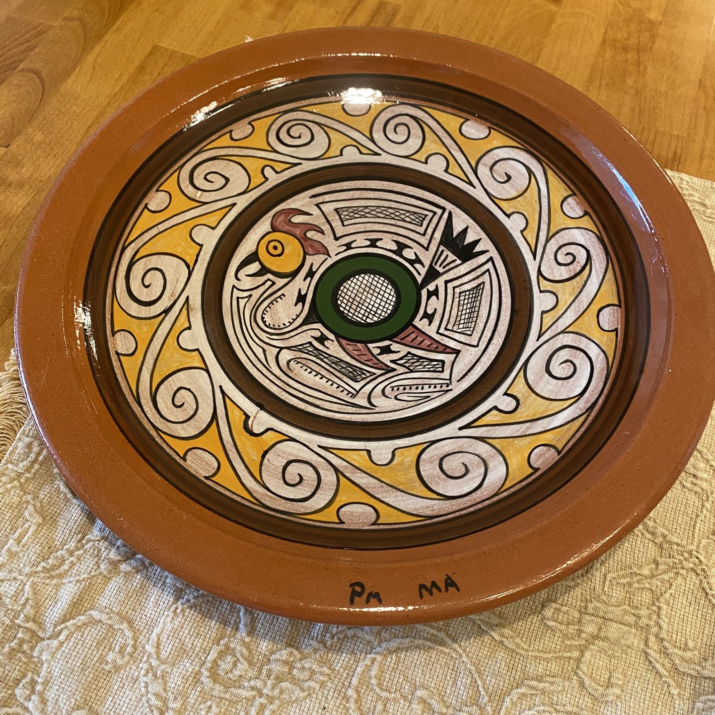 Murillo ceramic wall art hanging pottery plate with bird. 12 inche. Southwest / vintage/ cottage.