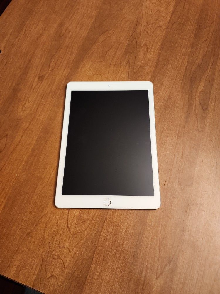 Used Apple iPad Pro 1st Gen A1673 128GB 9.7" Gold This is factory reset and charging cable and brick IS included. No scratches or nicks on screen or sides. Light wear on back from its life in a case. Excellent for children or adults to play games or read with. No shipping available, local pick up only.