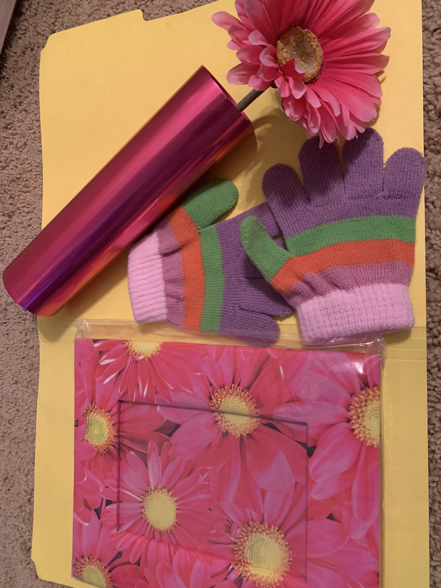 Pink Flower Photo Frame, Vase With Flower, & Small Mittens